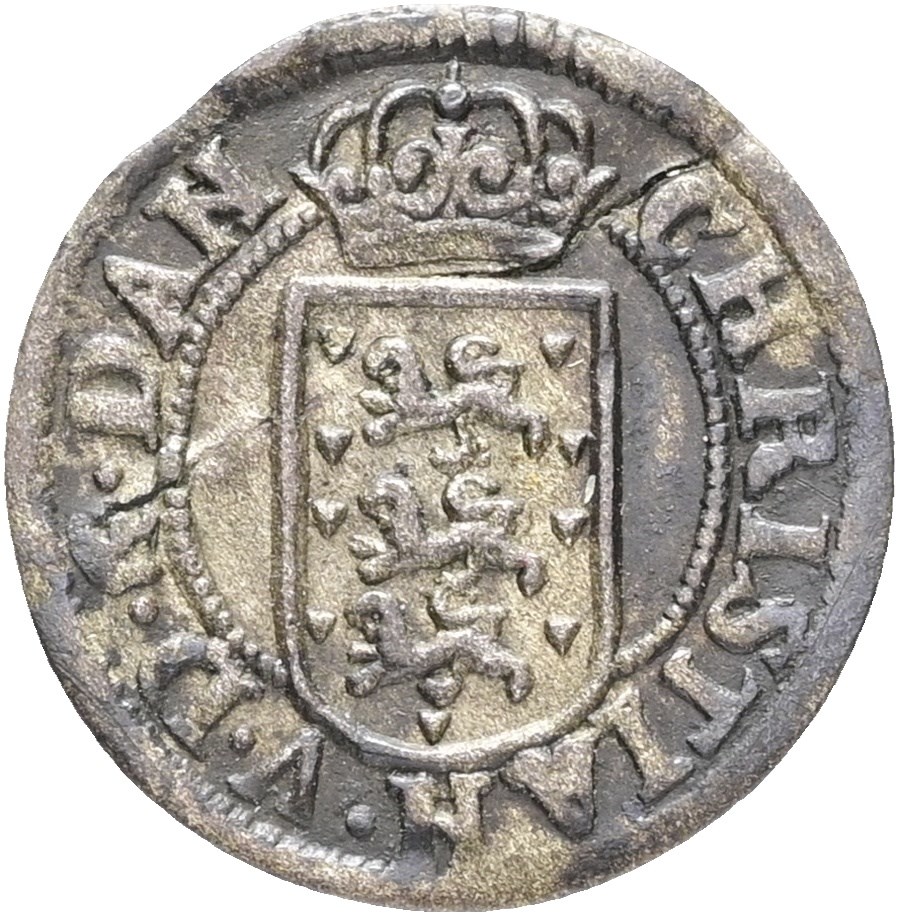Skilling 1676, har været bukket, revnet.