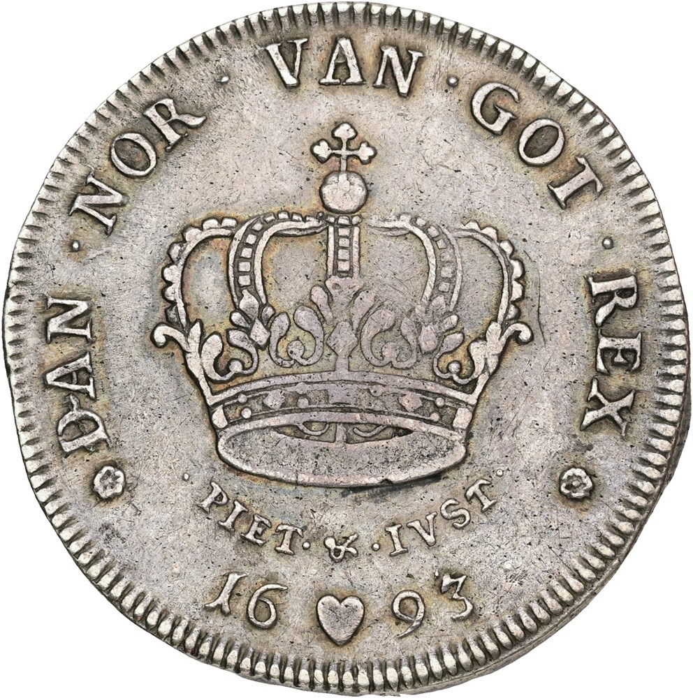 Krone 1693, stempelfejl, let renset.