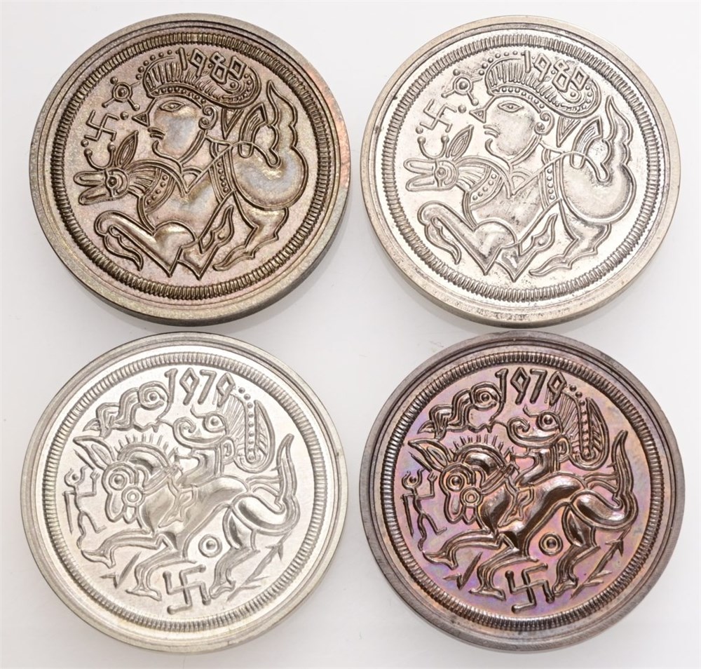 Frederikssund Mønten, 1979, Ag, 30 mm, 13,93 g, Ae, 30 mm, 12,06 g; 1980, Ag, 30 mm, 18,02 g, nr. 36, Ae, 30 mm, 15,30 g. (4)