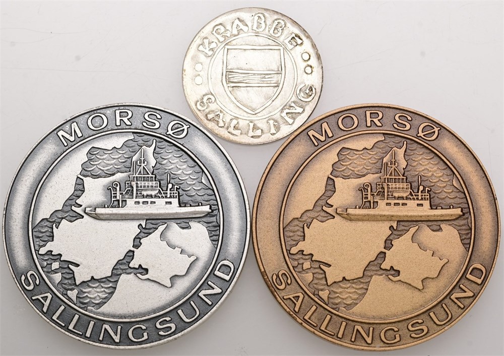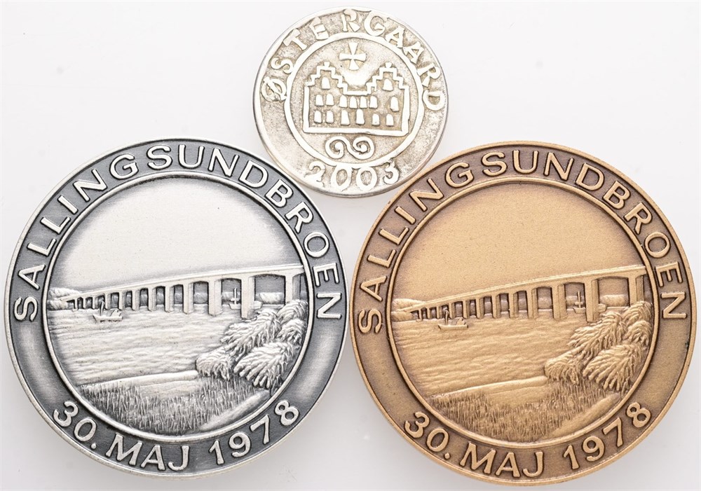 Sallingsund, 1978, Ag (925/1000), 35 mm, 23,18 g, nr. 0595/1000, Ae, 35 mm, 23,26 g, nr. 1738/3000; Salling, Østergaard, 2003, Ag (933/1000), 20 mm, 2,70 g. (3)