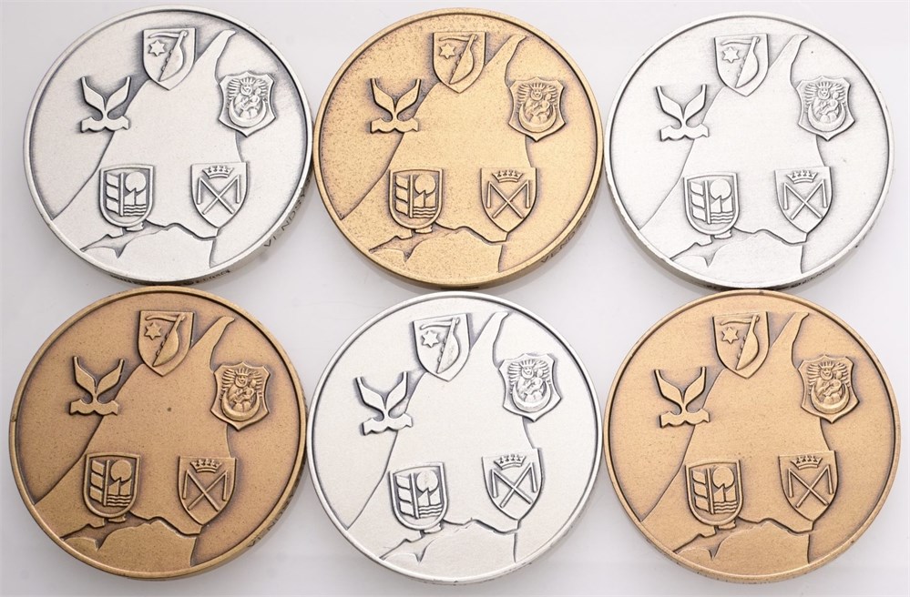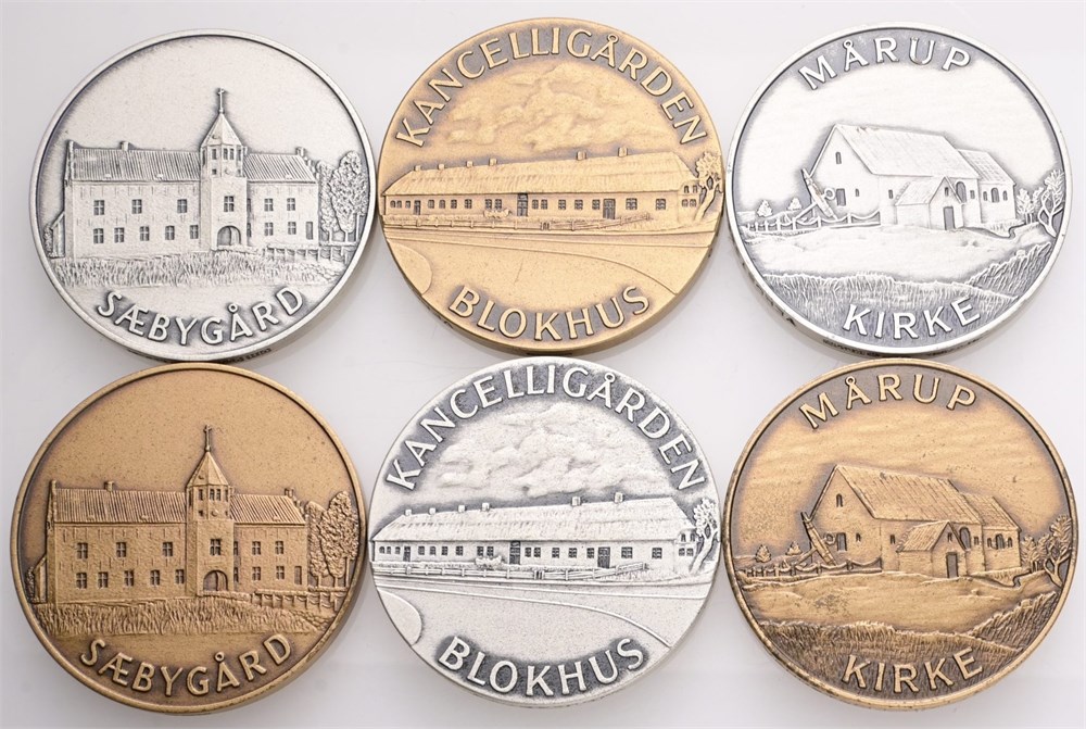 Vendsyssel-Mønten, 1982, Ag (925/1000), 35 mm, 27,78 g, nr. 163/500, Ae, 35 mm, 23,09 g, nr. 314/500, 1983, Ag (925/1000), 35 mm, 31,50 g, nr. 309/520, Ae, 35 mm, 27,95 g, nr. 279/540, 1984, Ag (925/1000), 35 mm, 32,00 g, nr. 309/454, Ae, 35 mm, 27,93 g, nr. 309/509. (6)