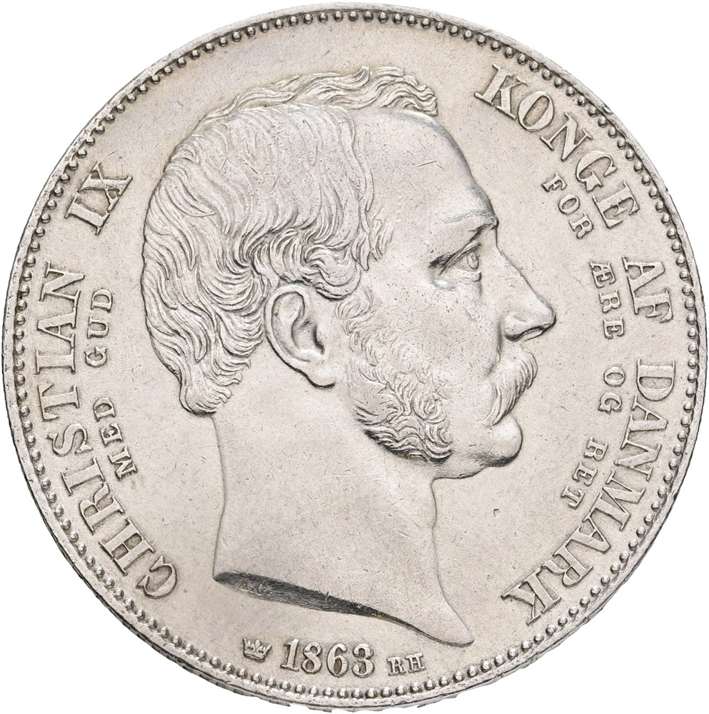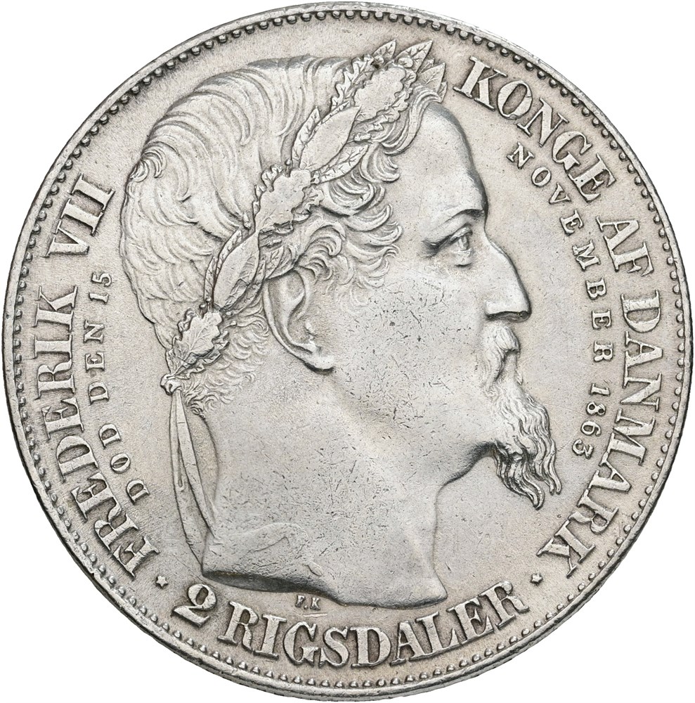 2 rigsdaler 1863, 'Tronskiftespecie', let renset.