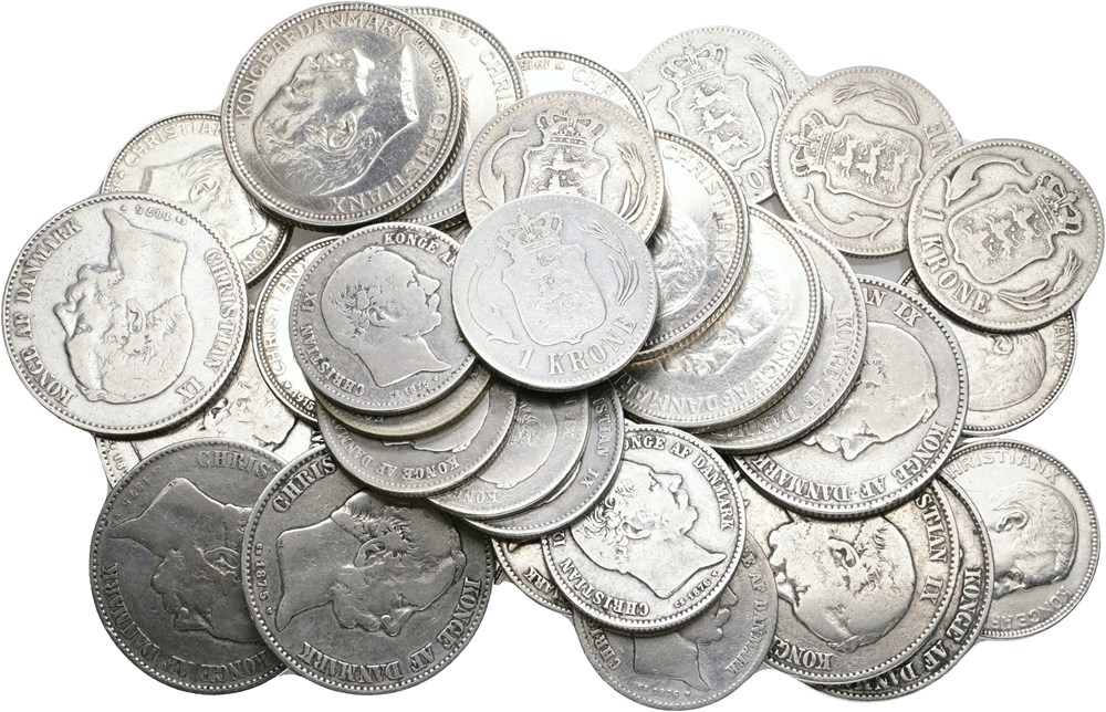 1 krone 1875 (9), 1876 (5), 1915 (8), 1916 (2); 2 kroner 1875 (7), 1876, 1915 (3), 1916 (2). (37)