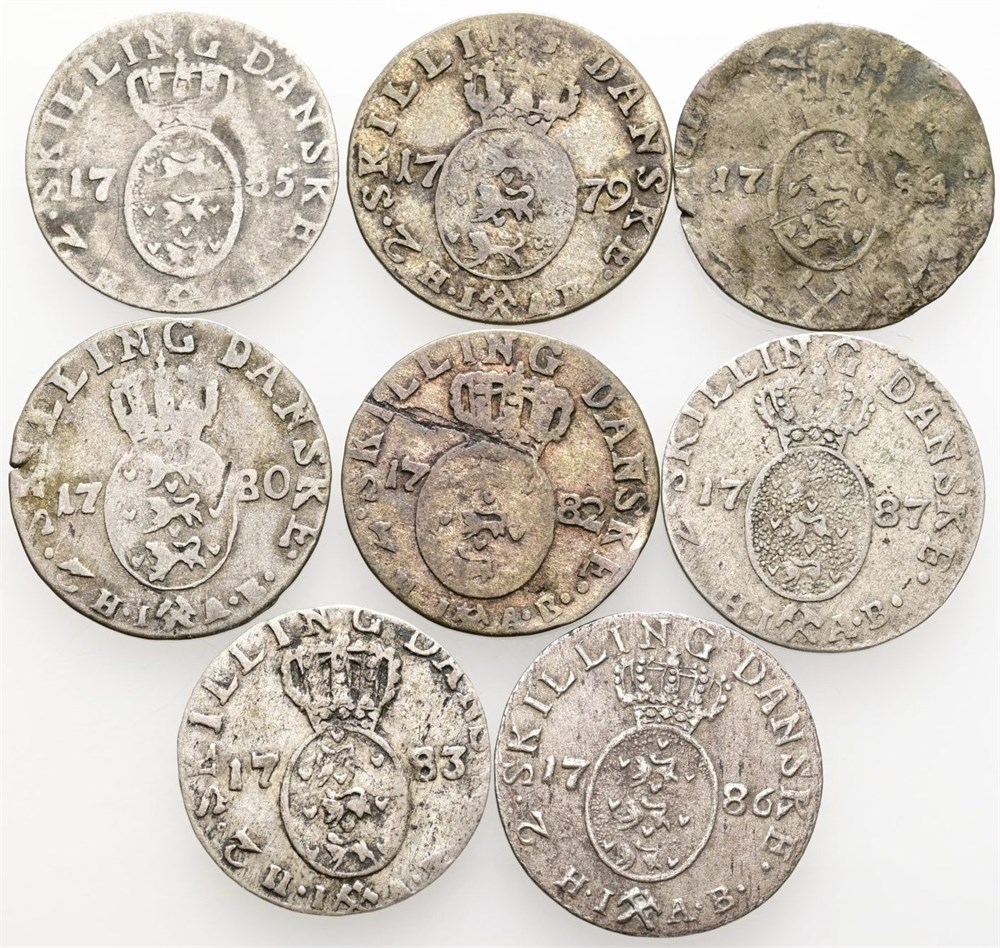 - Samling 2 skilling, alle forskellige. (8) (15529825)