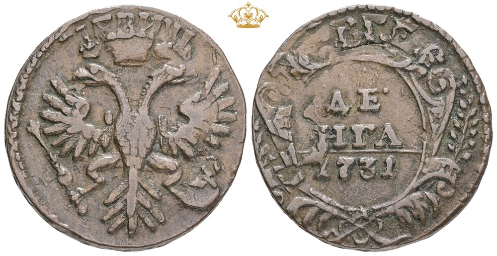 - Denga (1/2 Kopek) 1731, struck on an earlier coin. (15546069)