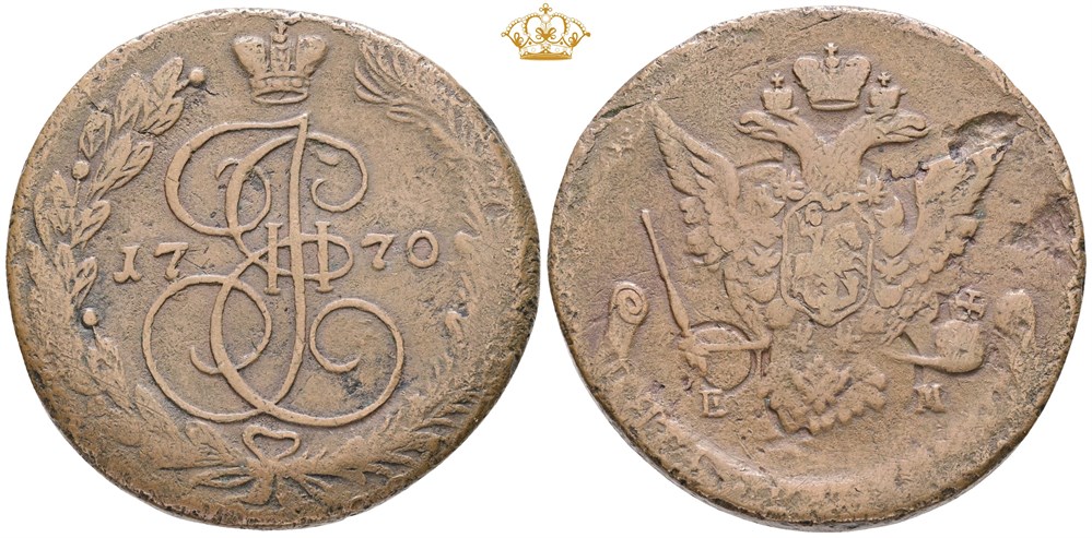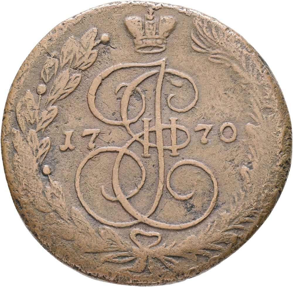 5 Kopecks 1770 EM - error coin with clashed dies / ghosting.
