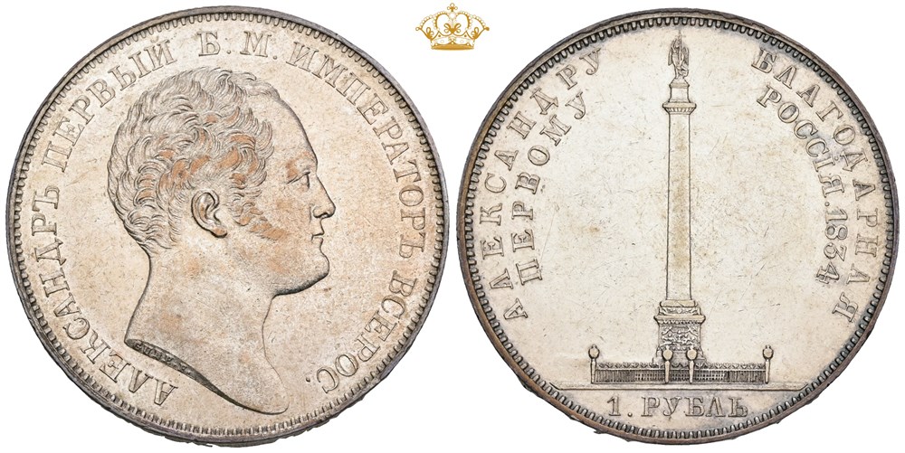 Rouble 1834, 'Alexander I column commemorative', wiped.
