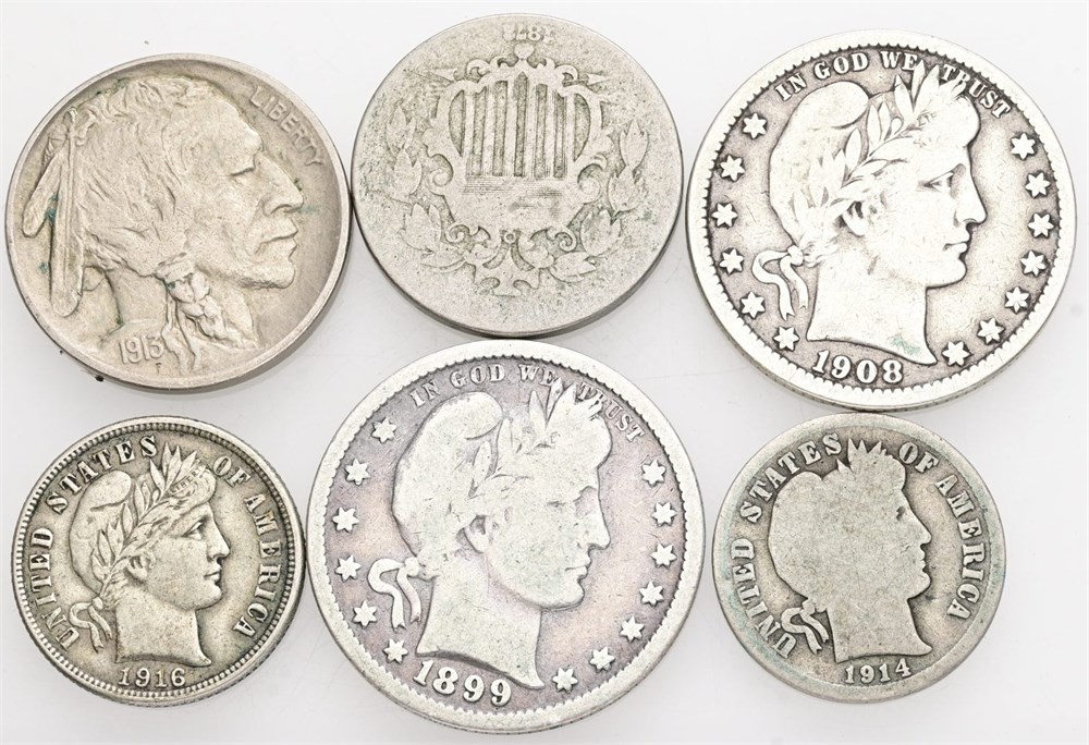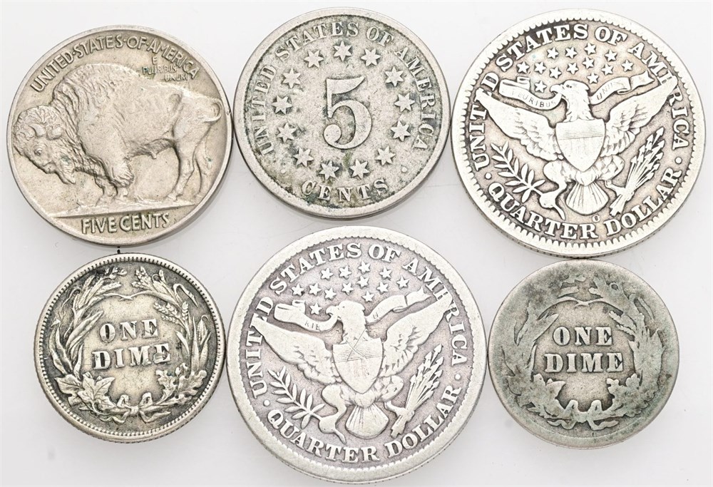 5 Cents 1872, 1913 (type 2); Dime 1914, 1916; Quarter Dollar 1899, 1908 O. (6)