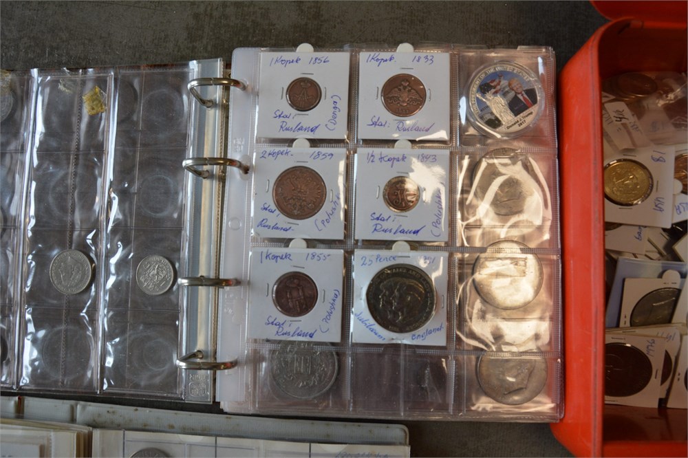 Collection incl. England, Elizabeth I, 6 Pence 1581; Charles I, Shilling ND; Germany, 50 Rentenpfennig 1924 A, J; Russia, Kopeck 1833; Rouble 1990, 1991; 3 Roubles 1991, 1992, 1992; 5 Roubles 1989; USA, c. 180 USD in coins.