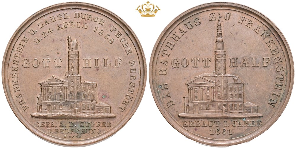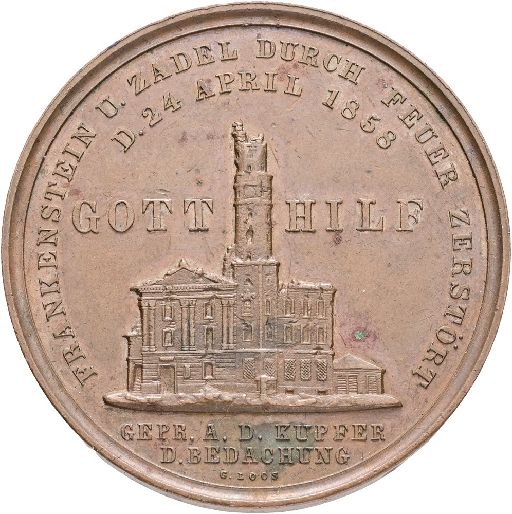 Silesia, Frankenstein, the destruction of the city, 1858, by Loos, Ae, 41.5 mm, some spots.