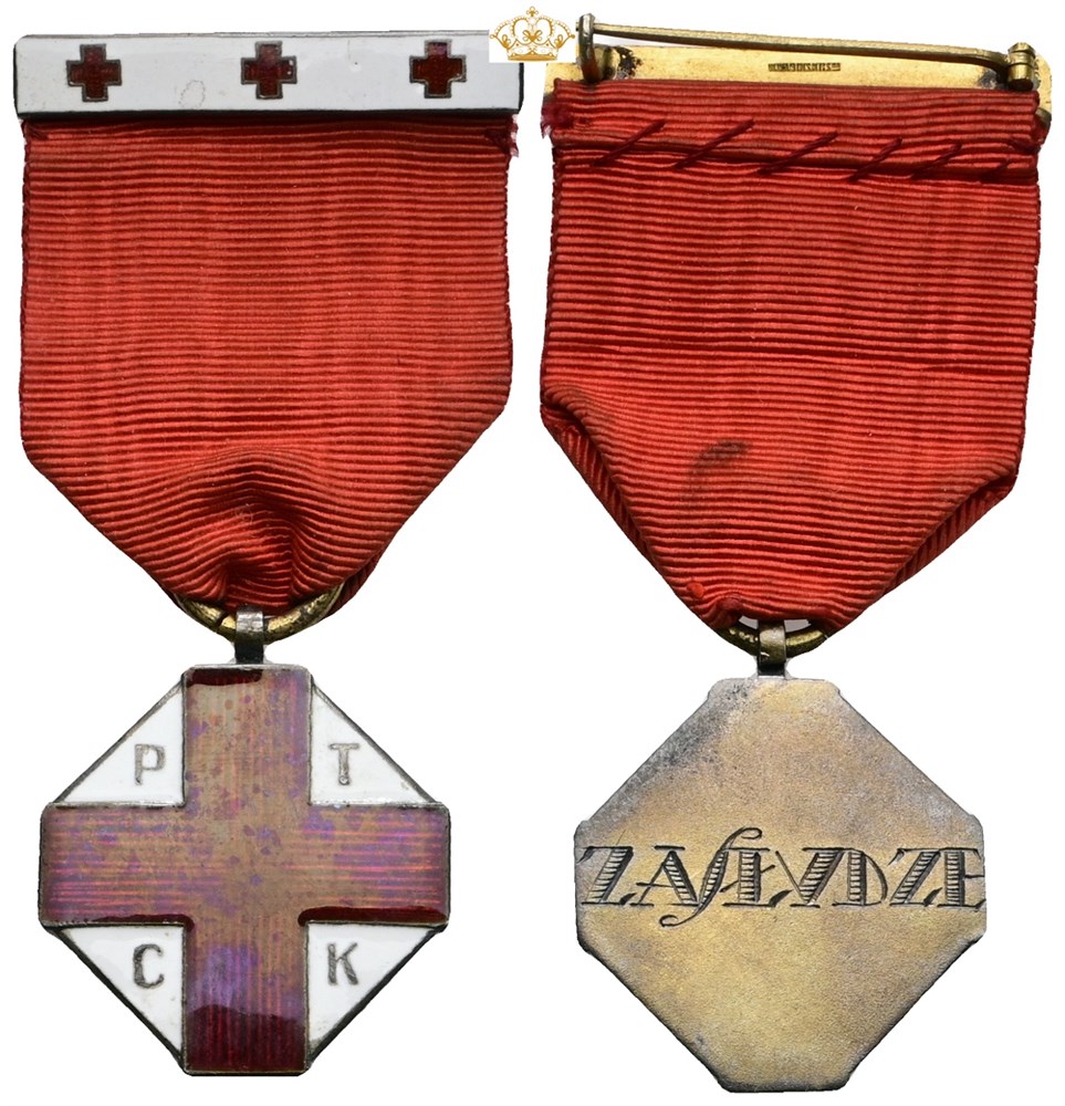 PTCK / PCK, Polish Red Cross, Badge of Honour, 1st class, ND (c. 1921-1927), engraved "ZASŁUDZE" on the reverse, by W. Wabiński, Ae with enamel, 31 mm.