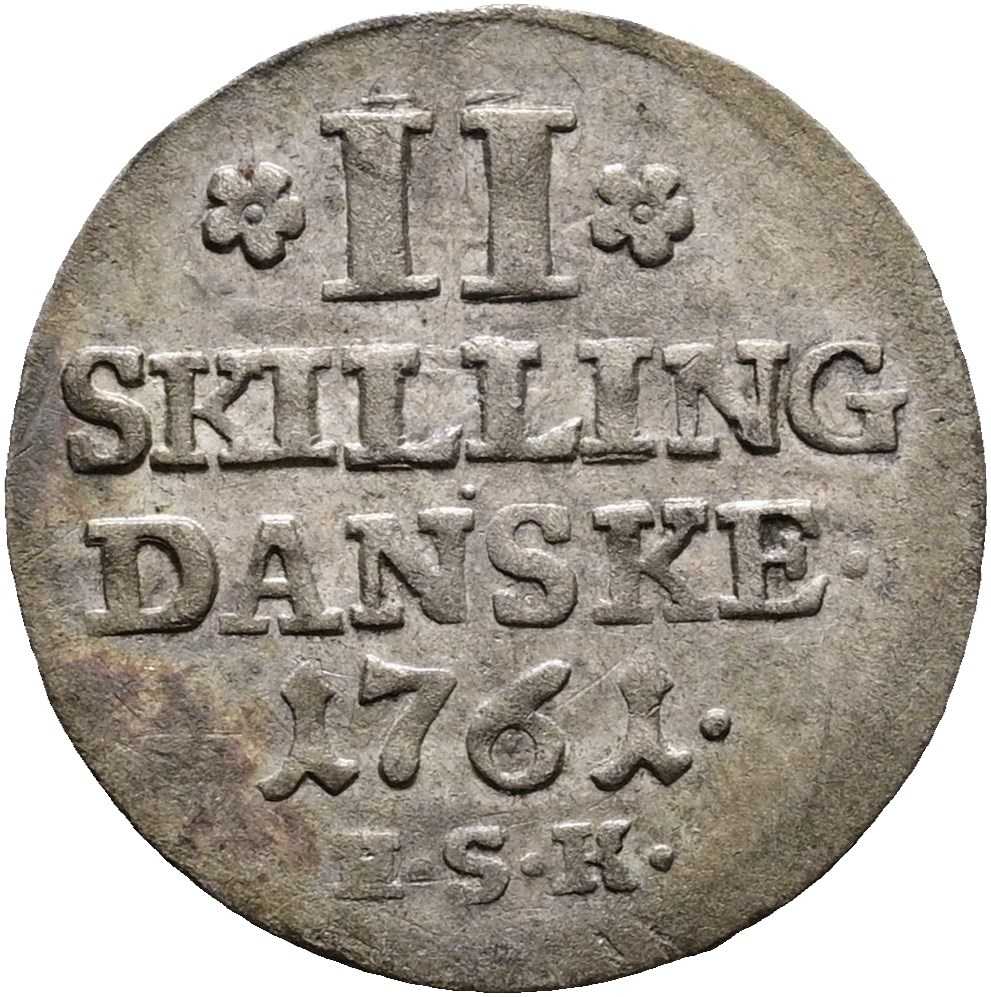 2 skillling 1761, H 36B, Sieg 3.2, kv. 01-1+