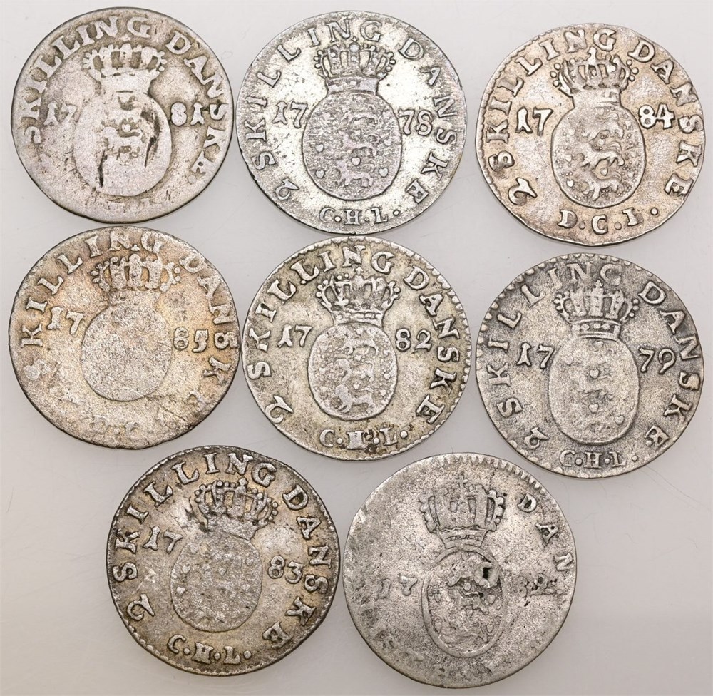 - Samling 2 skilling, alle forskellige. (8) (15821922)