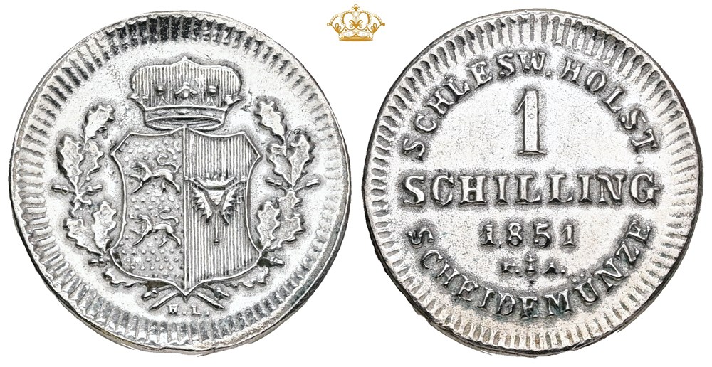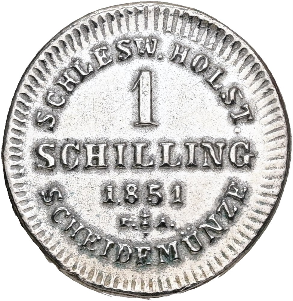 Slesvig-Holsten, Oprørsregeringen, schilling 1851 - kopi fremstillet af Jørgen Sømod, indslået "KOPI" og "N" i randen, med etiket.