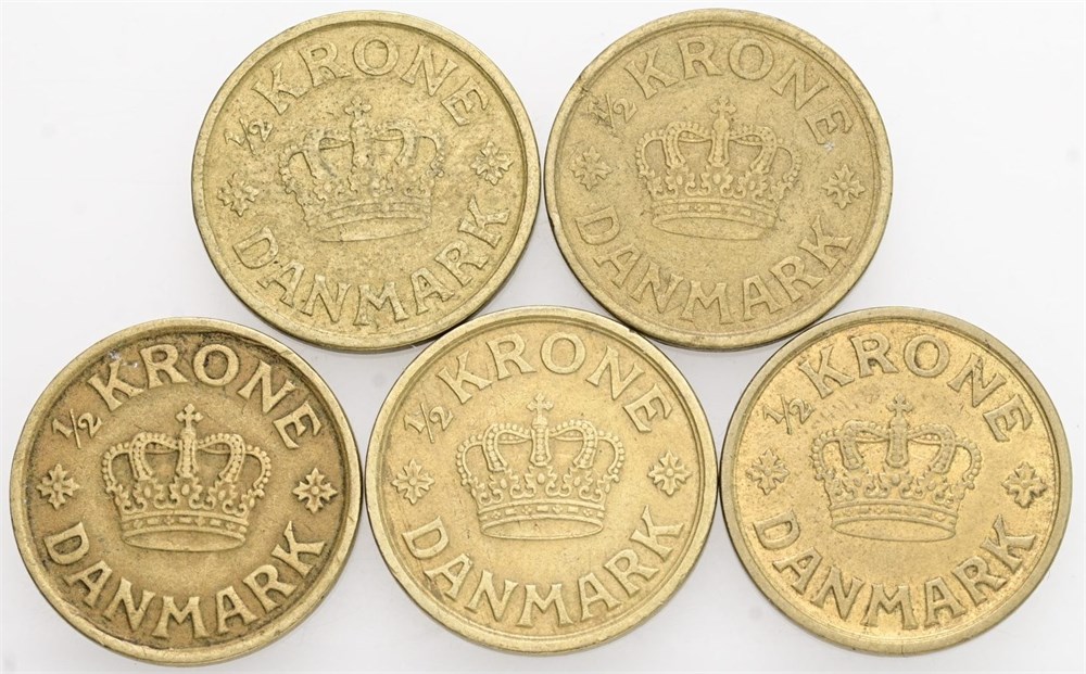 1/2 krone 1924, 1925, 1926, 1939, 1940. (5)