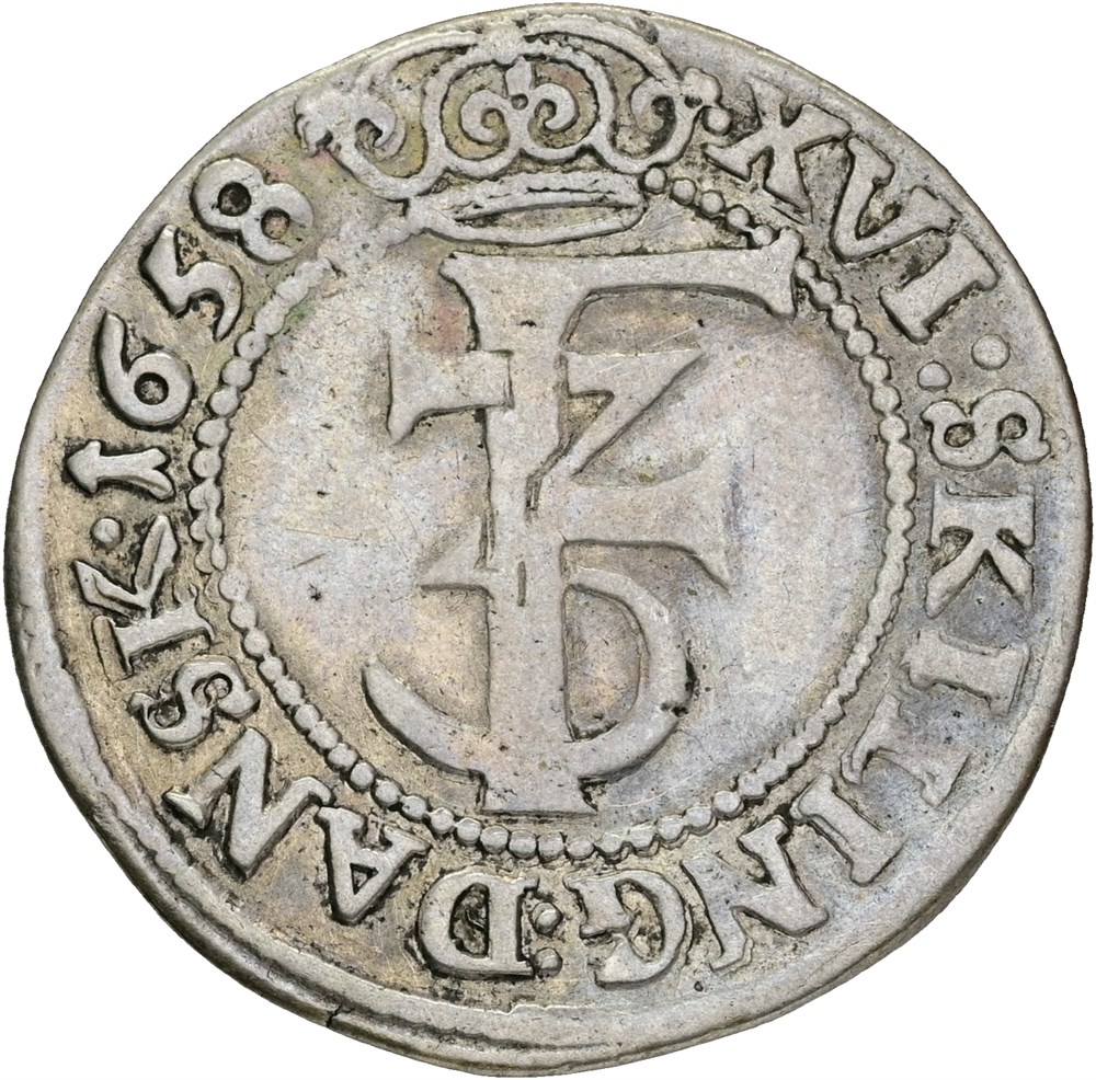 16 skilling / mark 1658, renset.