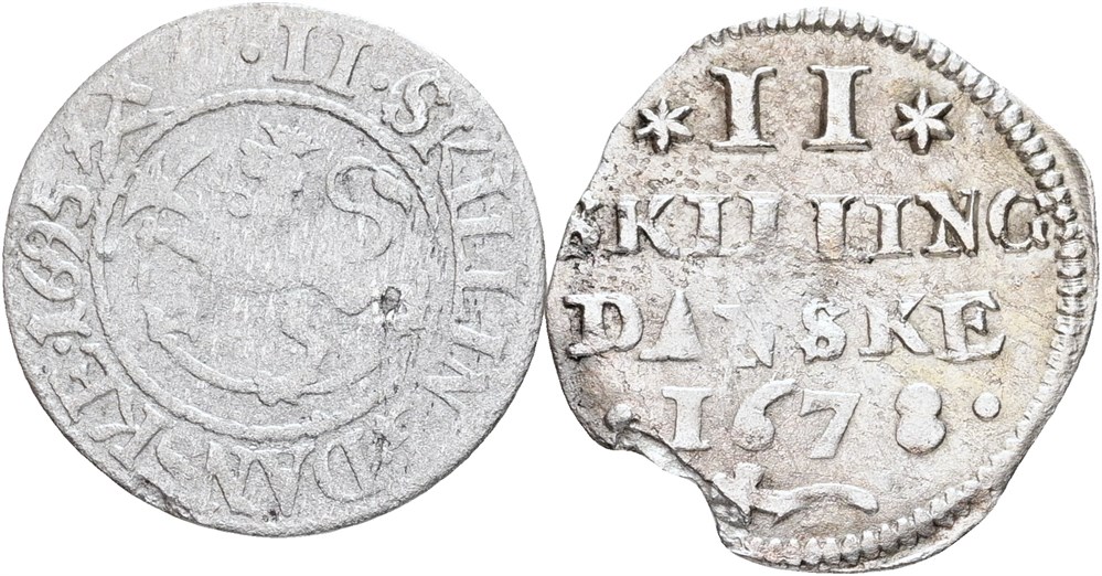 2 skilling 1678, 1695. (2)