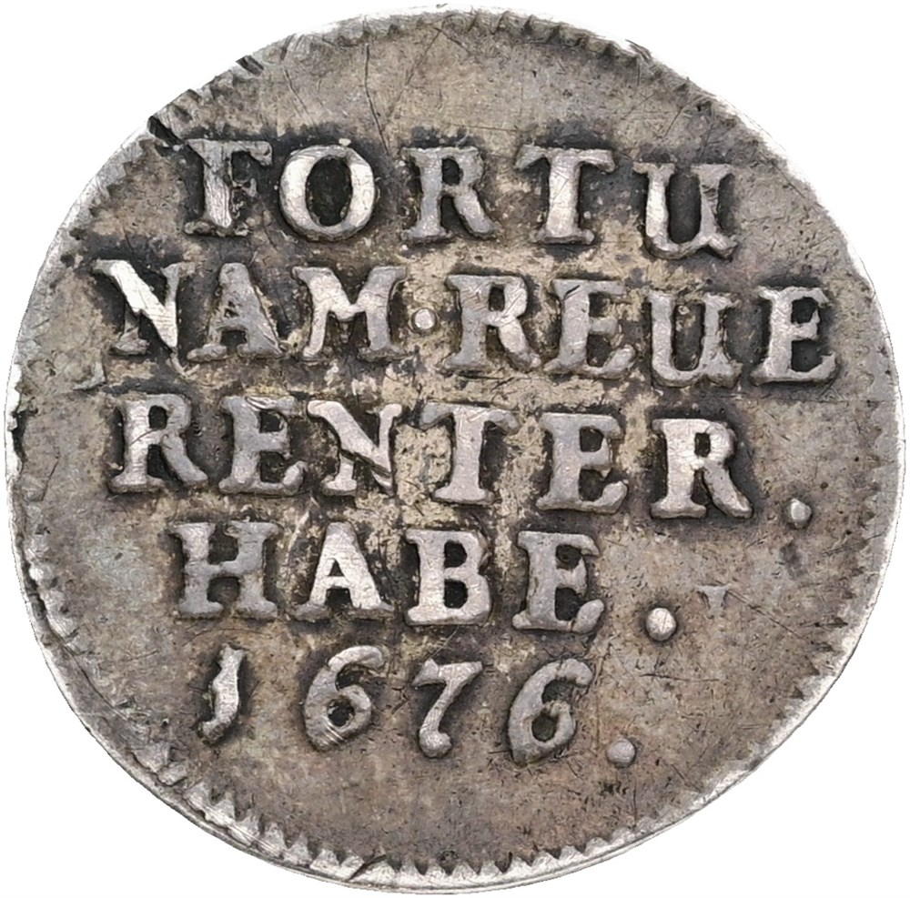 Peder Griffenfeld 1676, Hercules, Ag, 19 mm, "Far varligt med lykken"