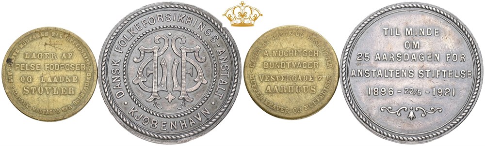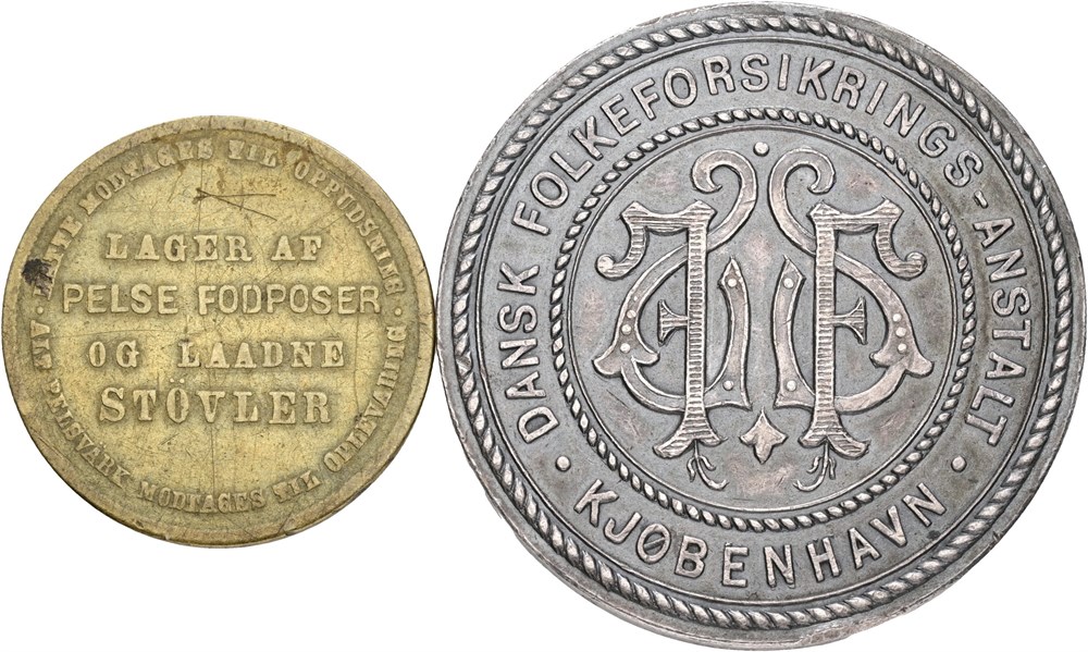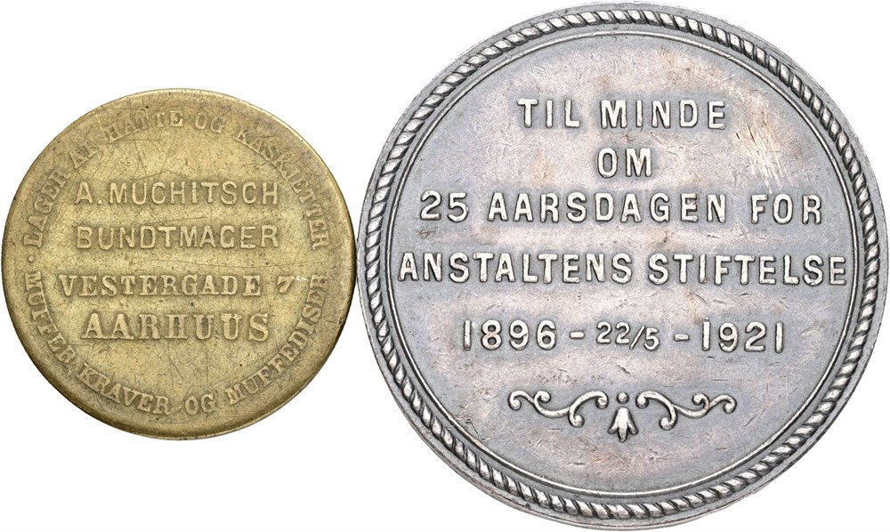 Dansk Folkeforsikrings-Anstalt, Kjøbenhavn, 1921, Ag, 41 mm, 34,86 g; A. Muchitsch, bundtmager, Ae, 27,5 mm, 6,28 g. (2)