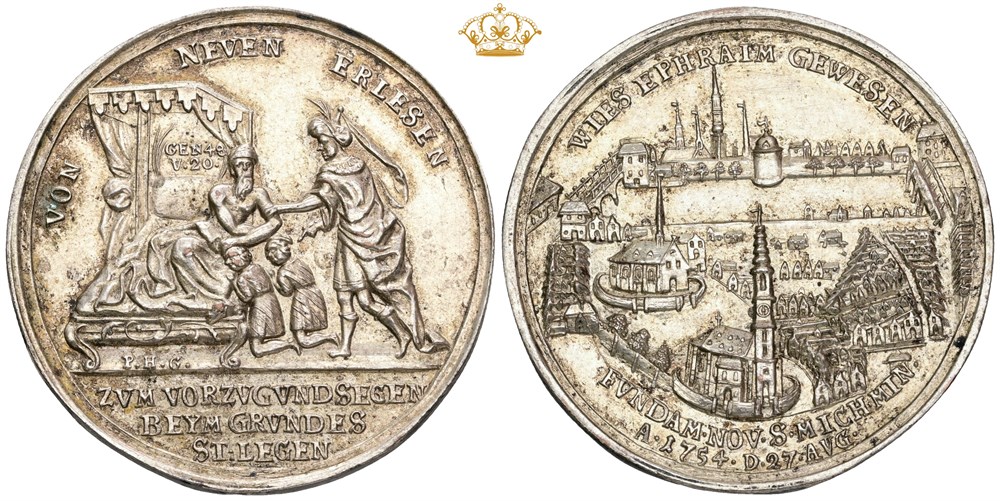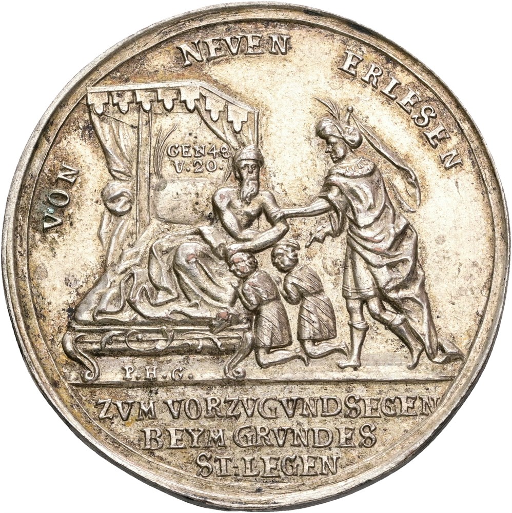 Laying of the foundation stone for St. Michael's Church, Hamburg, 1754, by P.H. Goedecke, 38 mm - silvered electrotype copy.