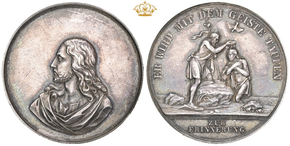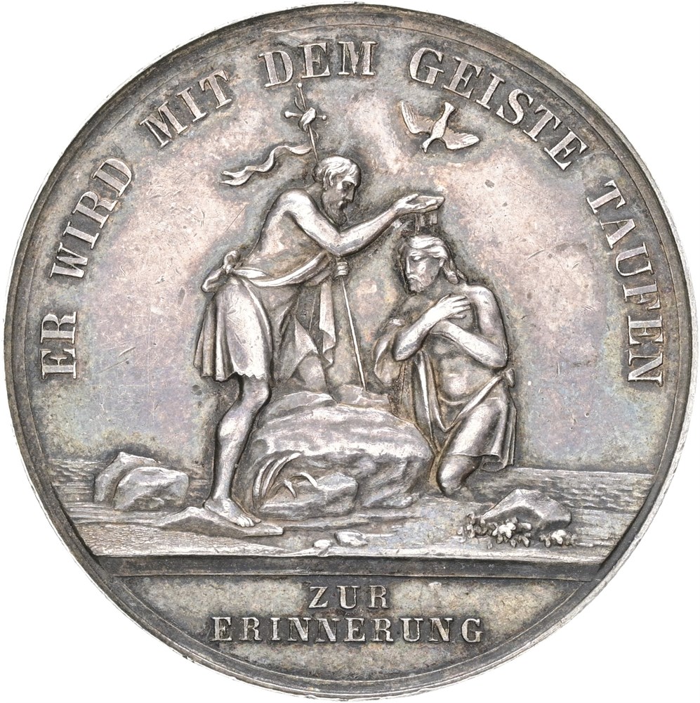 Religious baptism medal, 'Er wird mit dem Geiste taufen, Zur Erinnerung', Ag, 36 mm - inscription dated 11 April 1876 engraved in the edge.