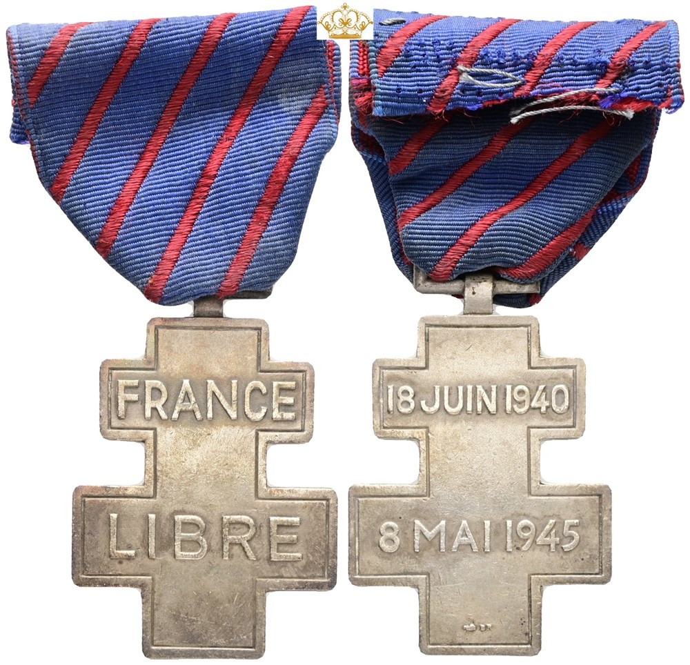 Commemorative medal for voluntary service in Free France, 1940-1945, "France Libre / 18 juin 1940, 8 mai 1945", Ae, with original ribbon.