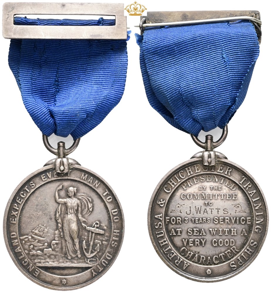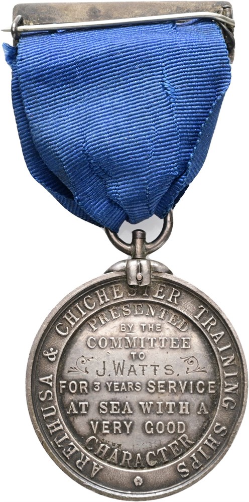Arethus & Chichester Training Ships, Service medal, 3 years, Ag - Awarded to J. Watts