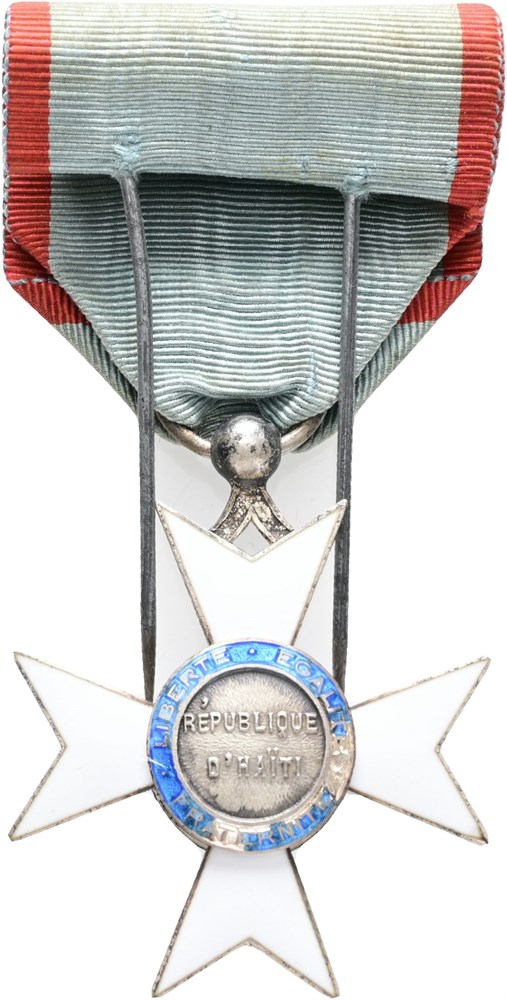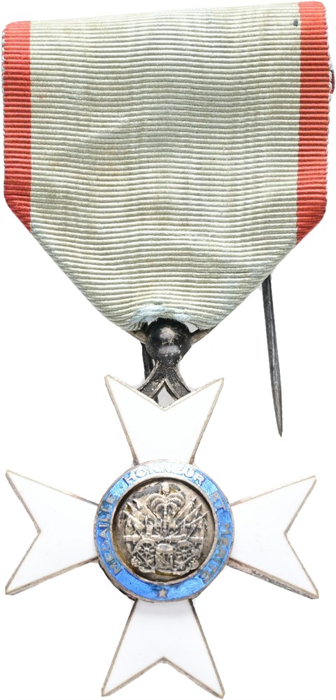 National Order of Honour and Merit, Knight Cross, "medaille honneur et merite", lightly damaged enamel, with original ribbon.