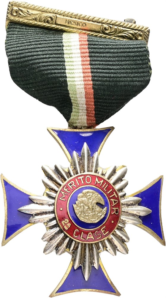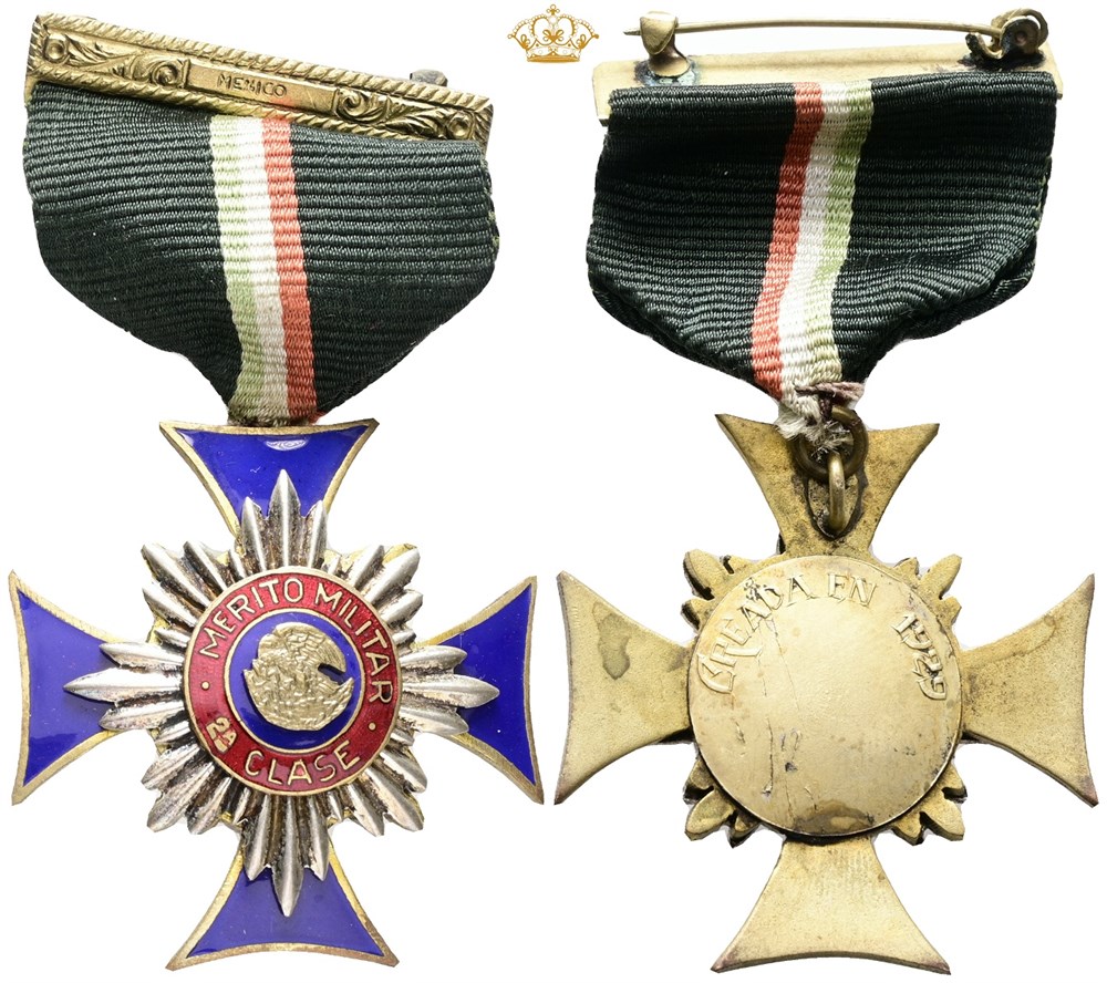 Military merit medal, 2nd class, established in 1929, "Merito Militar 2a Clase / creada en 1929", enameled Ae, with original ribbon.