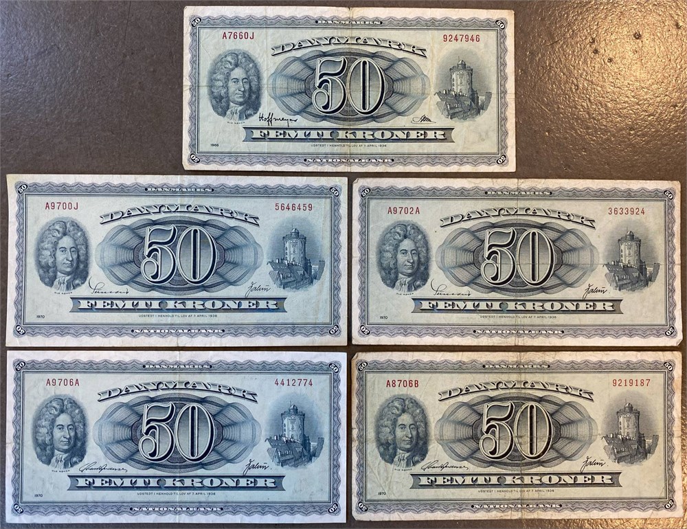 50 kroner 1766, 1970 (4), alle forskellige. (5)