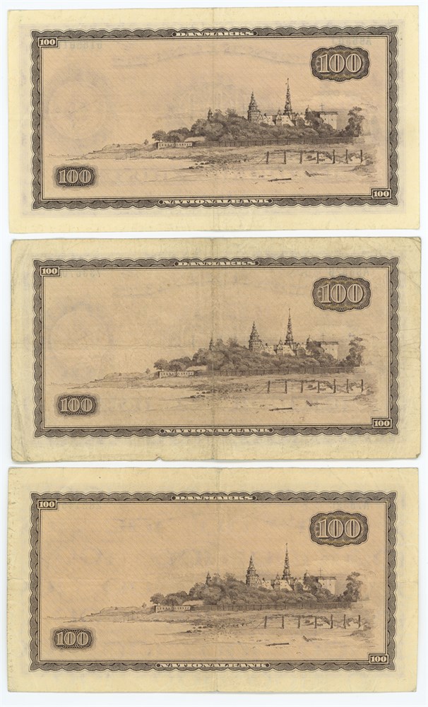 - 100 kroner 1965, 3 forskellige. (3) (15912045)