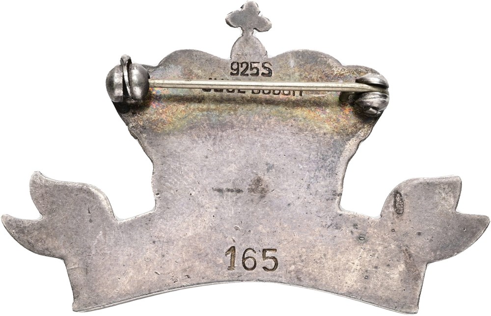 Dronning Ingrids Sanatorium. Emblem i 925/1000 Ag. Juul Busch. Nr. 165. 48x30 mm. Det nuværende landshospital i Nuuk, Dronning Ingrids Hospital, blev etableret 1953-54 og hed frem til 1961 Dronning Ingrids Sanatorium. Meget sjælden.