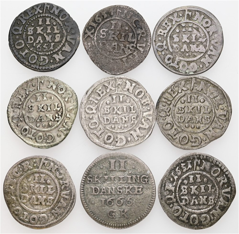 - 2 skillinger, 9 stk. alle forskellige. (9) (16097467)