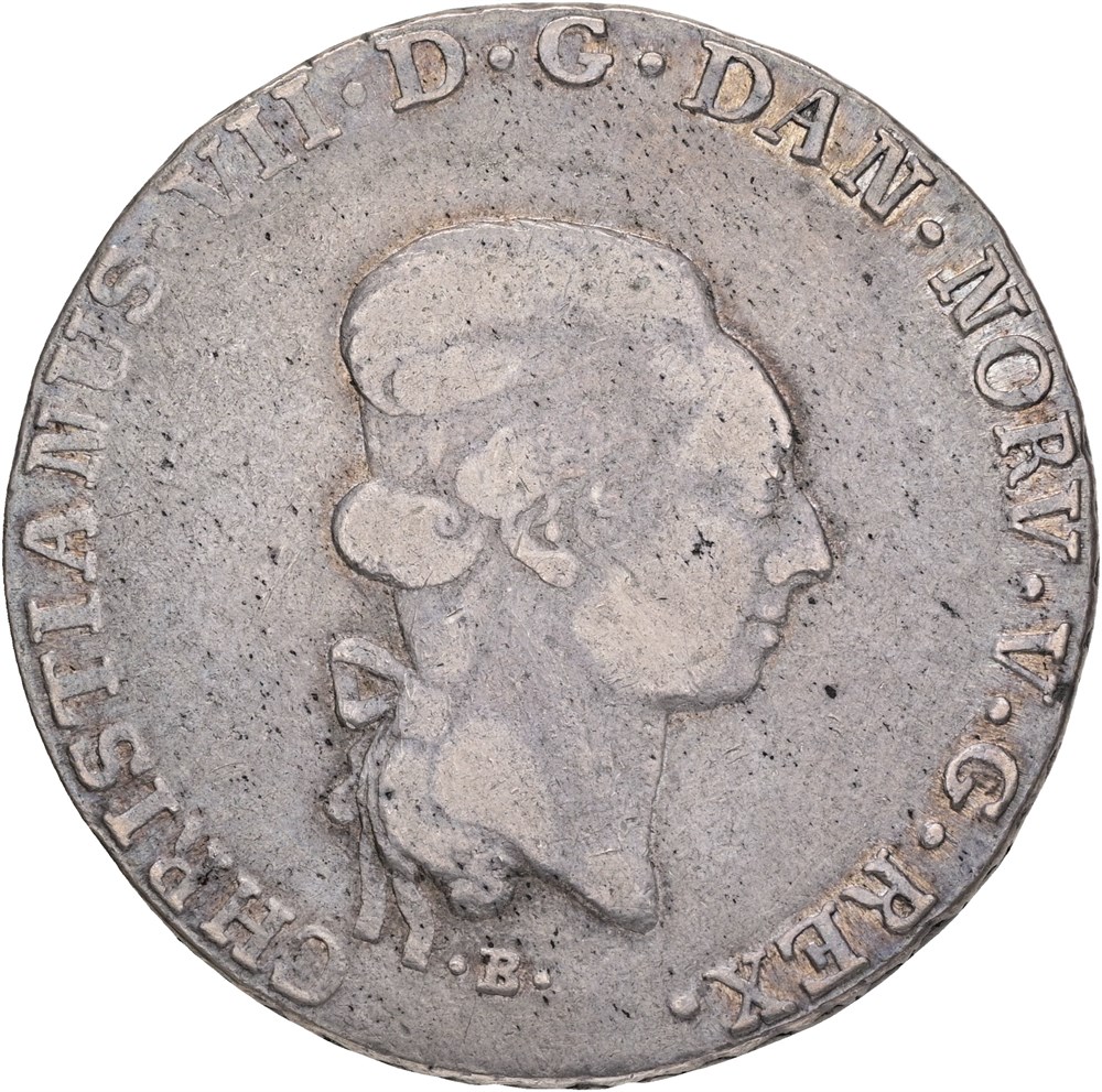 Speciedaler 1795, gennemslag - således at omrids af portrættet ses på bagsiden.