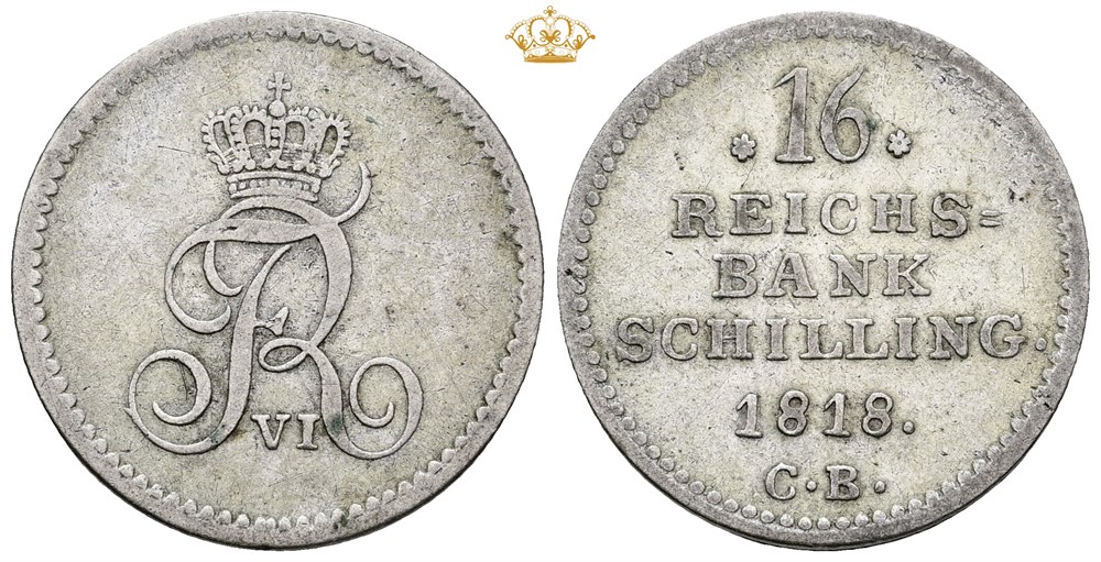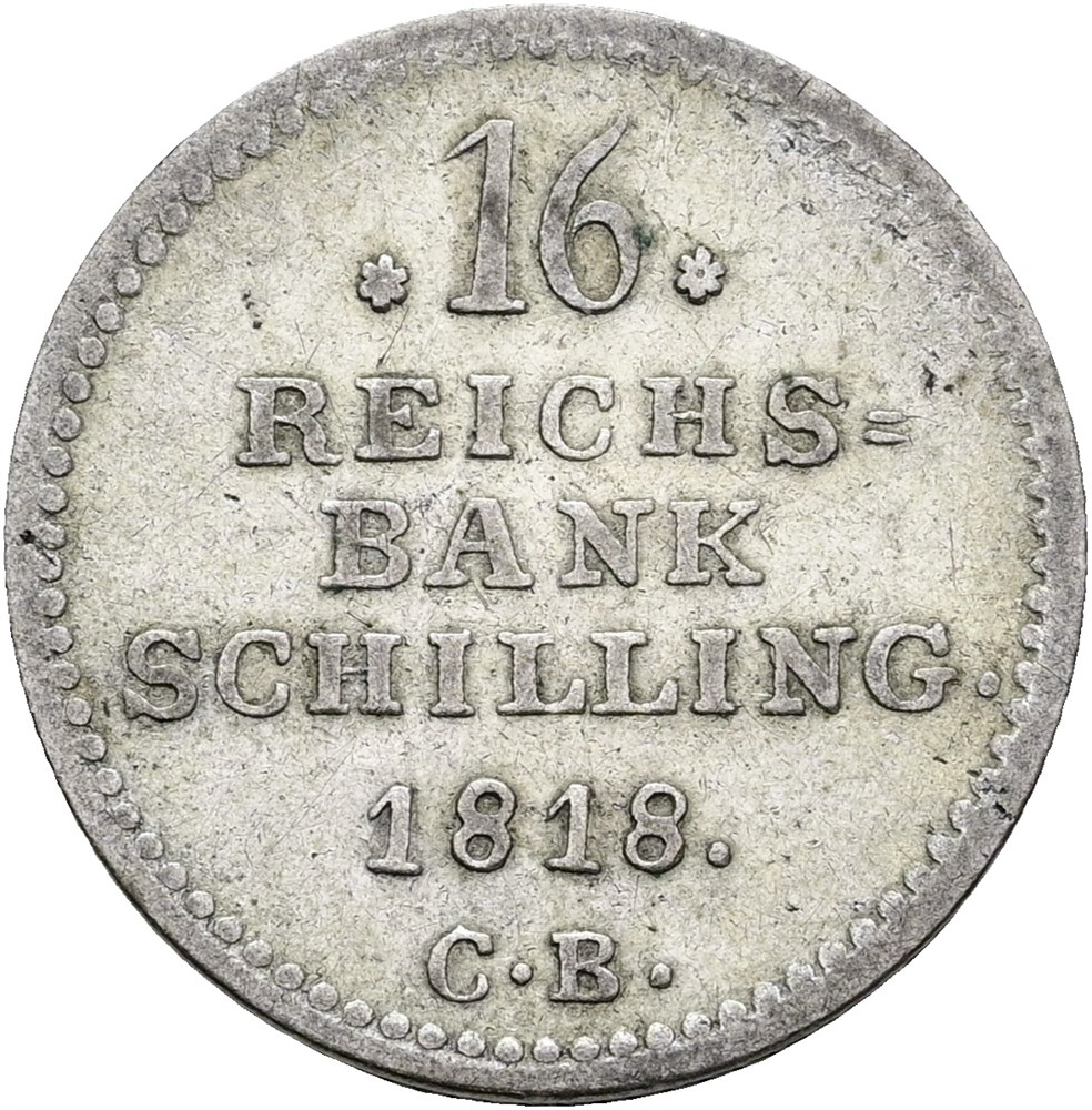 16 rigsbankskilling 1818 CB.