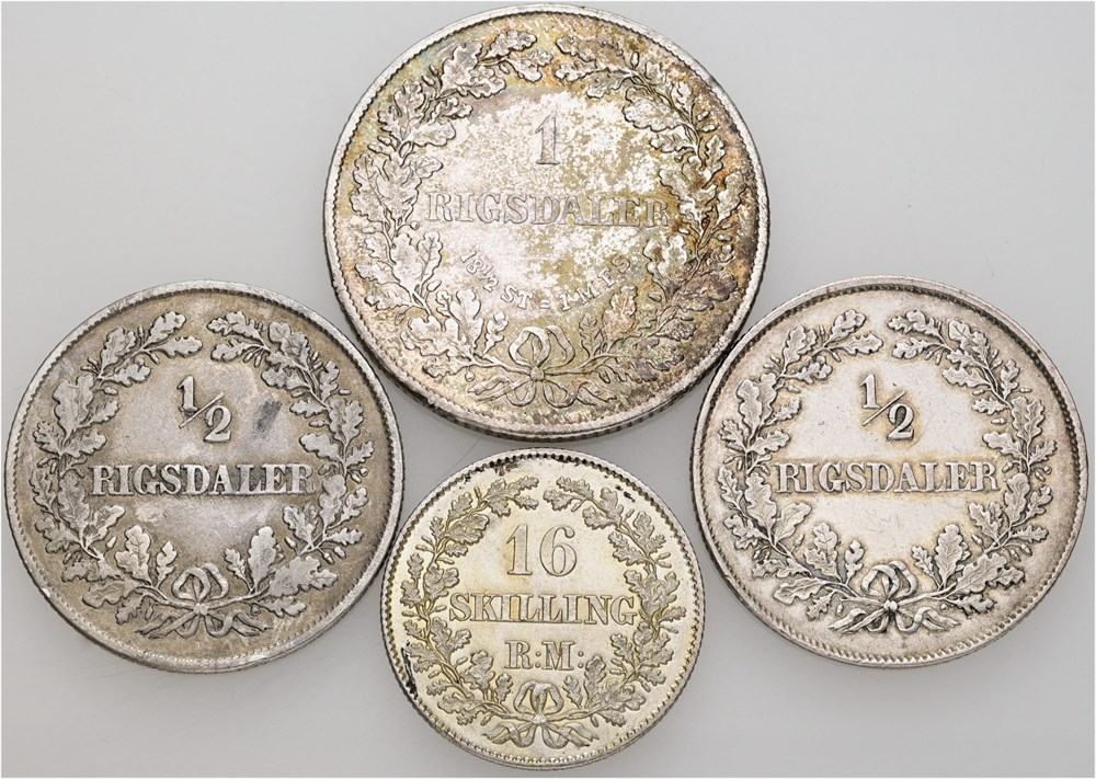 - 16 skilling 1857, 1/2 rigsdaler 1854, 1855 samt rigsdaler 1855. (4) (16113498)