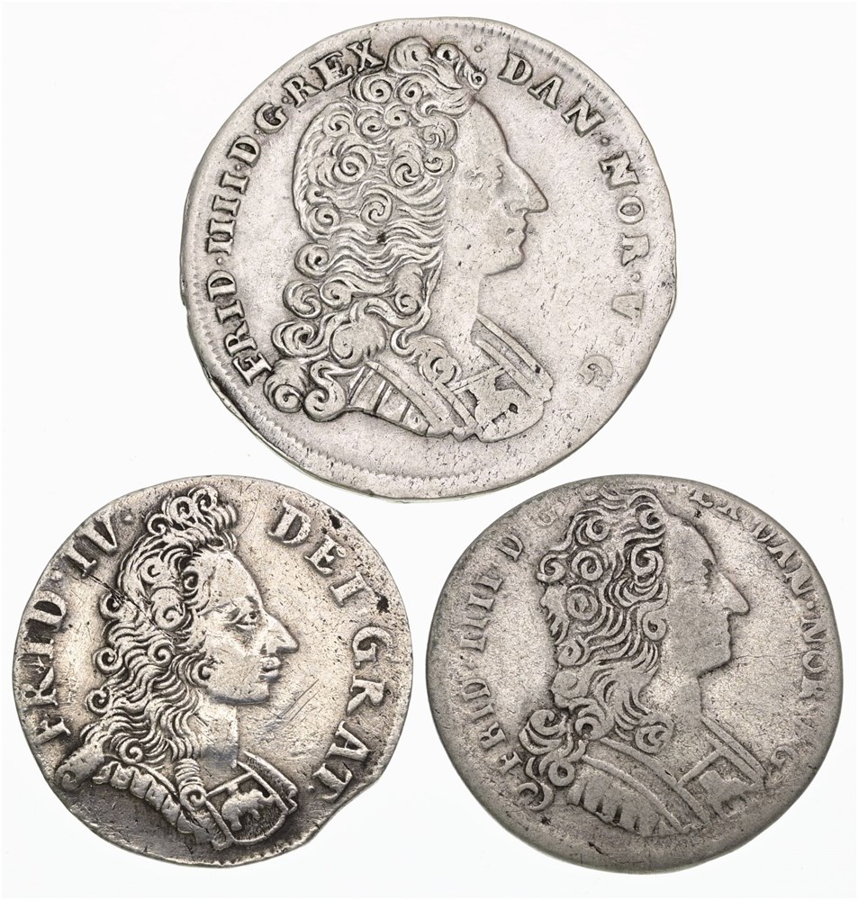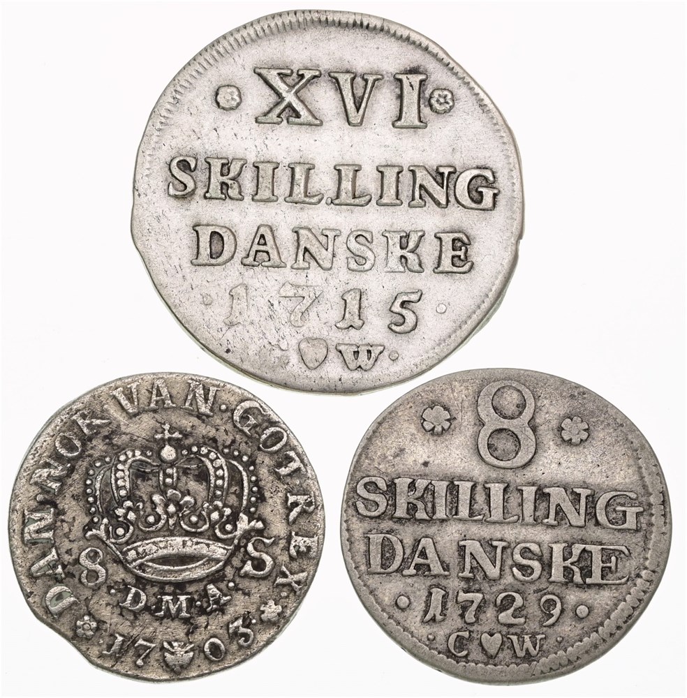 8 skilling 1729; 16 skilling 1715; Glückstadt, 8 skilling 1703, renset. (3)