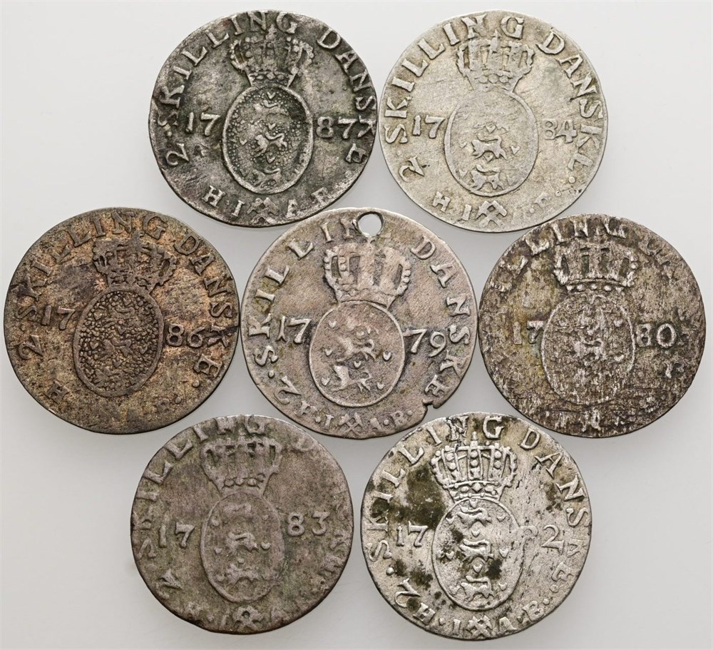 - Samling 2 skilling, alle forskellige. (7) (16144621)