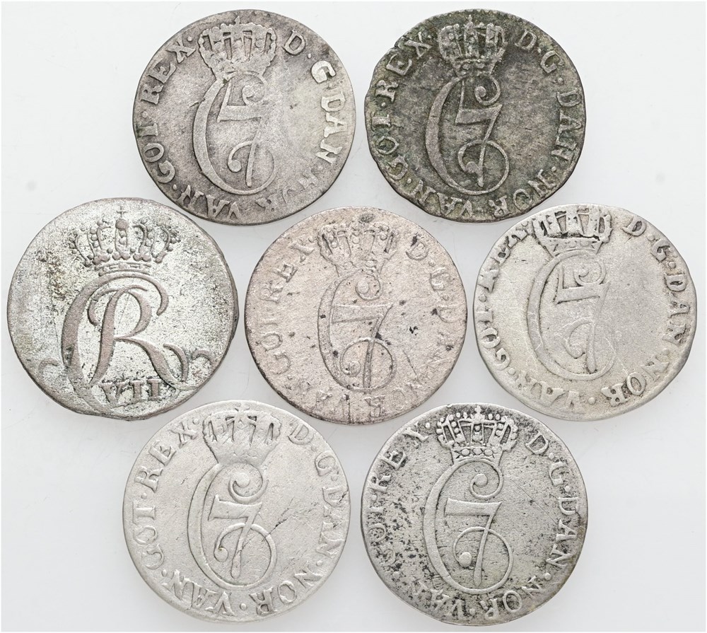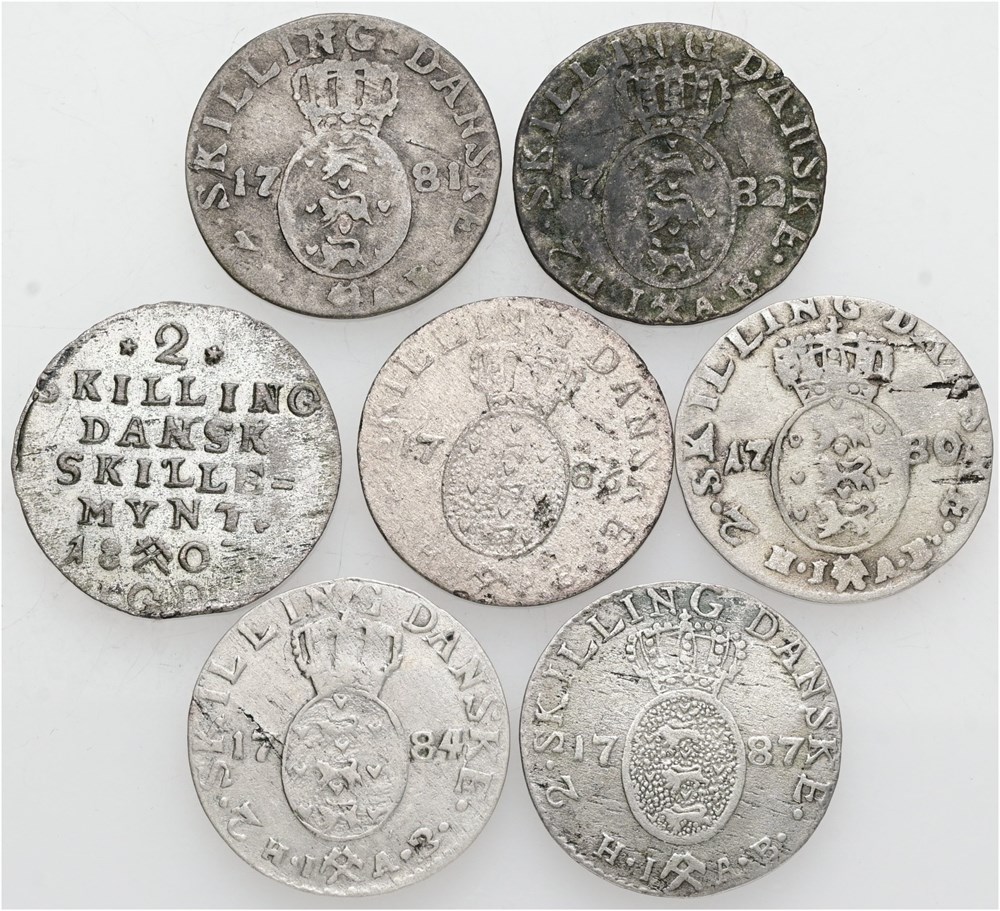 2 skilling 1780, 1781, 1782, 1784, 1786, 1787, 1803. (7)