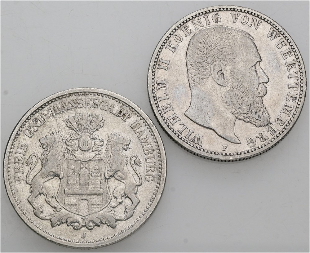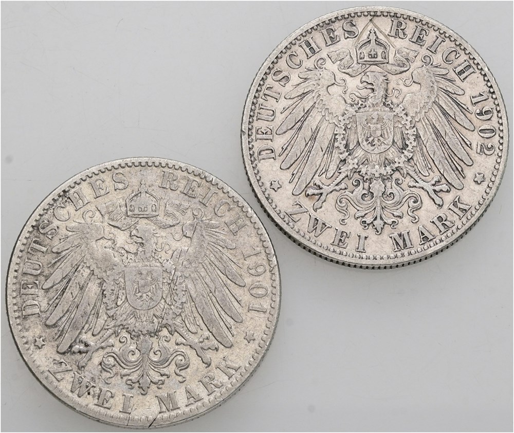 Hamburg, 2 Mark 1901 J; Württemberg, 2 Mark 1902 F. (2)