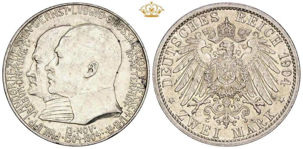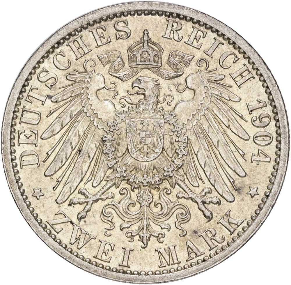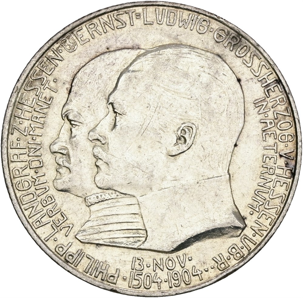 2 Mark 1904, 400th anniversary of the birth of Philipp the Magnanimous, cleaned obverse.