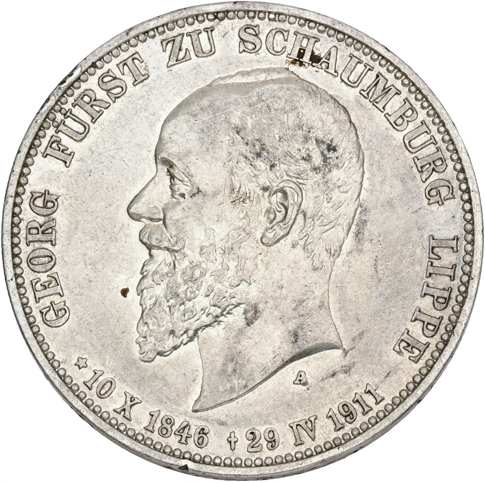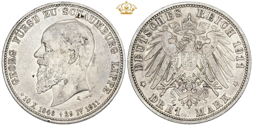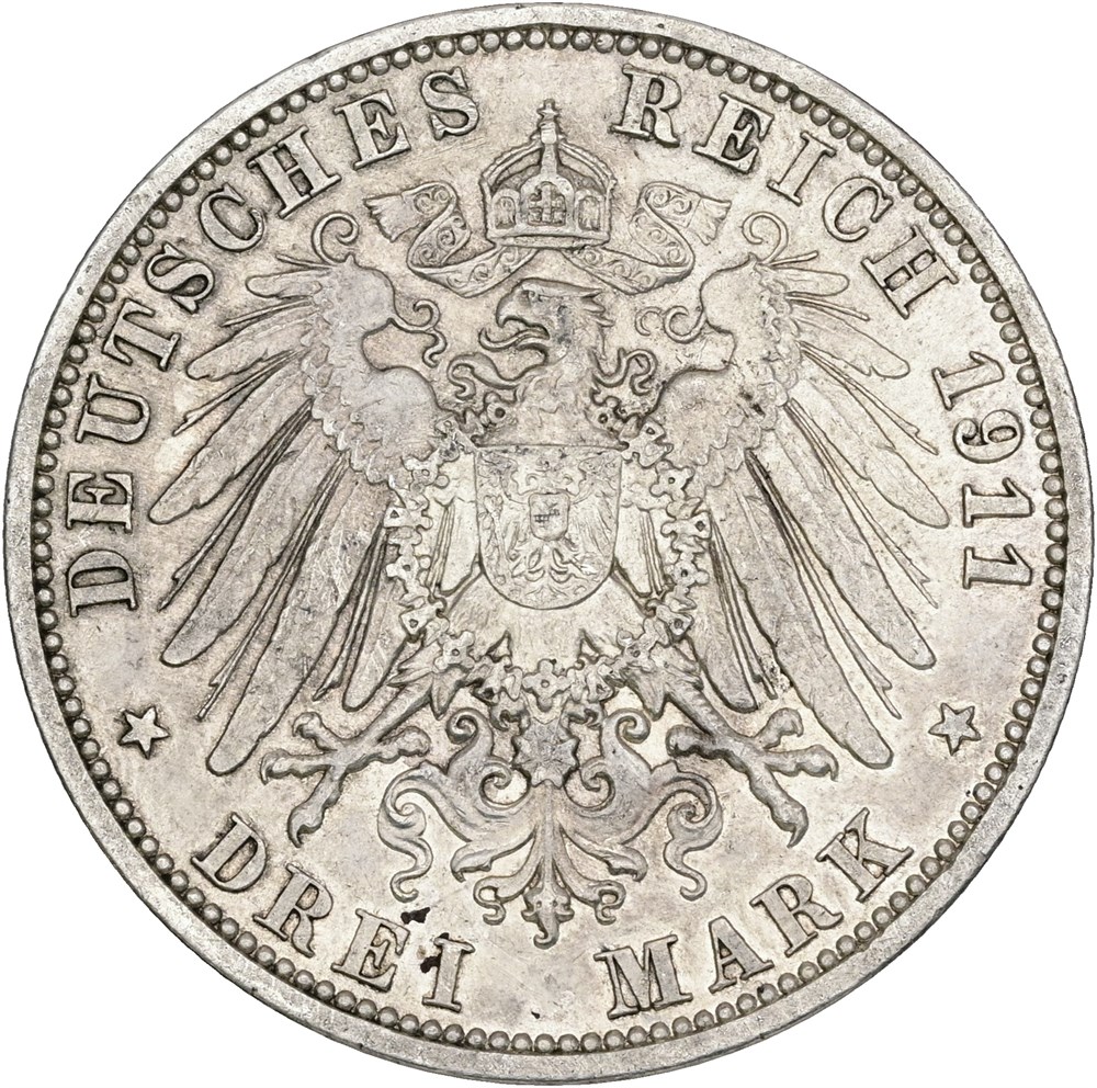 3 Mark 1911 A, death of Georg, lightly cleaned.