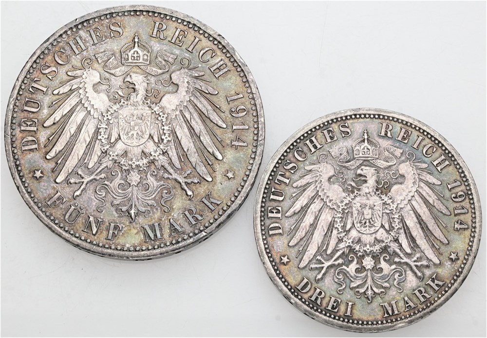 - 3 Mark 1914 A; 5 Mark 1914 A - "Matte von Hahn". (2) (16182363)