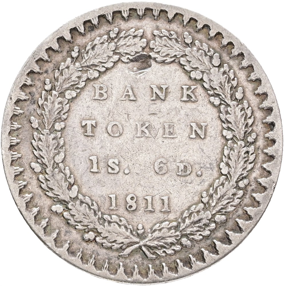 Eighteenpence 1811, dent on reverse.