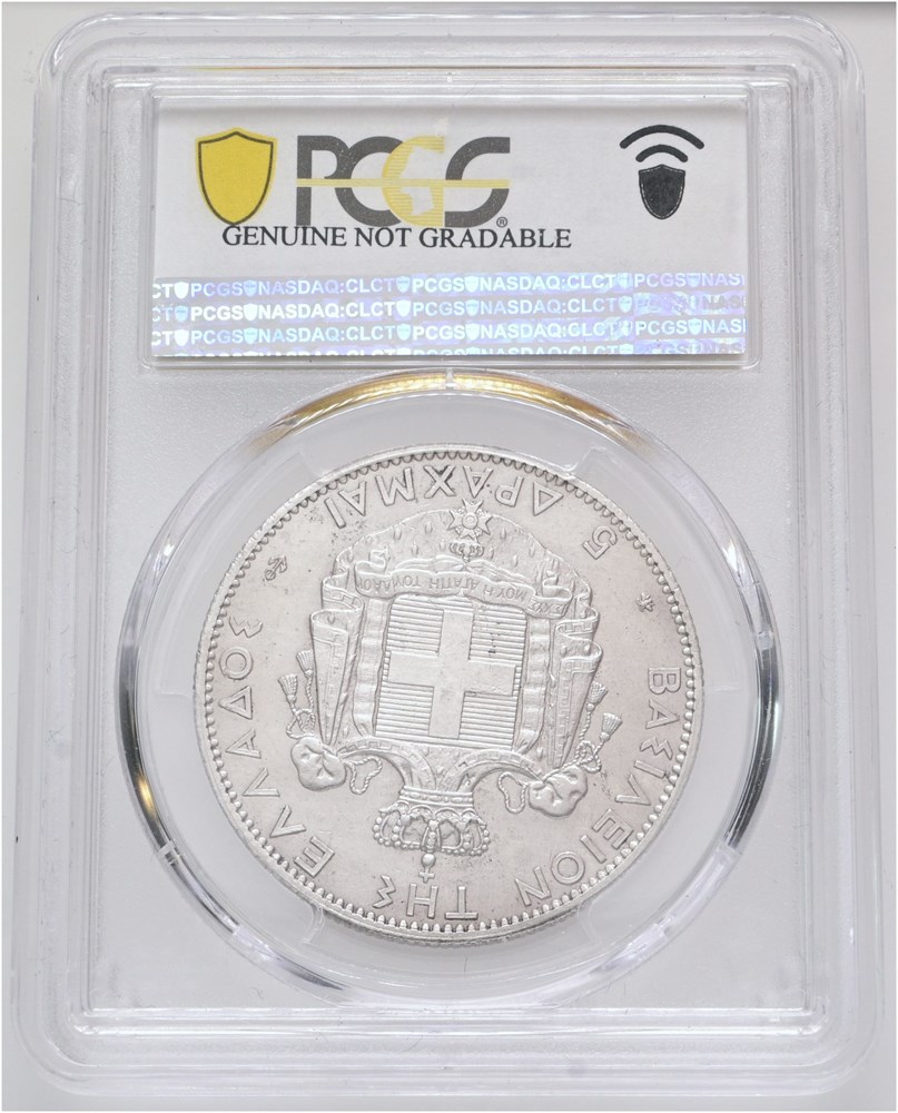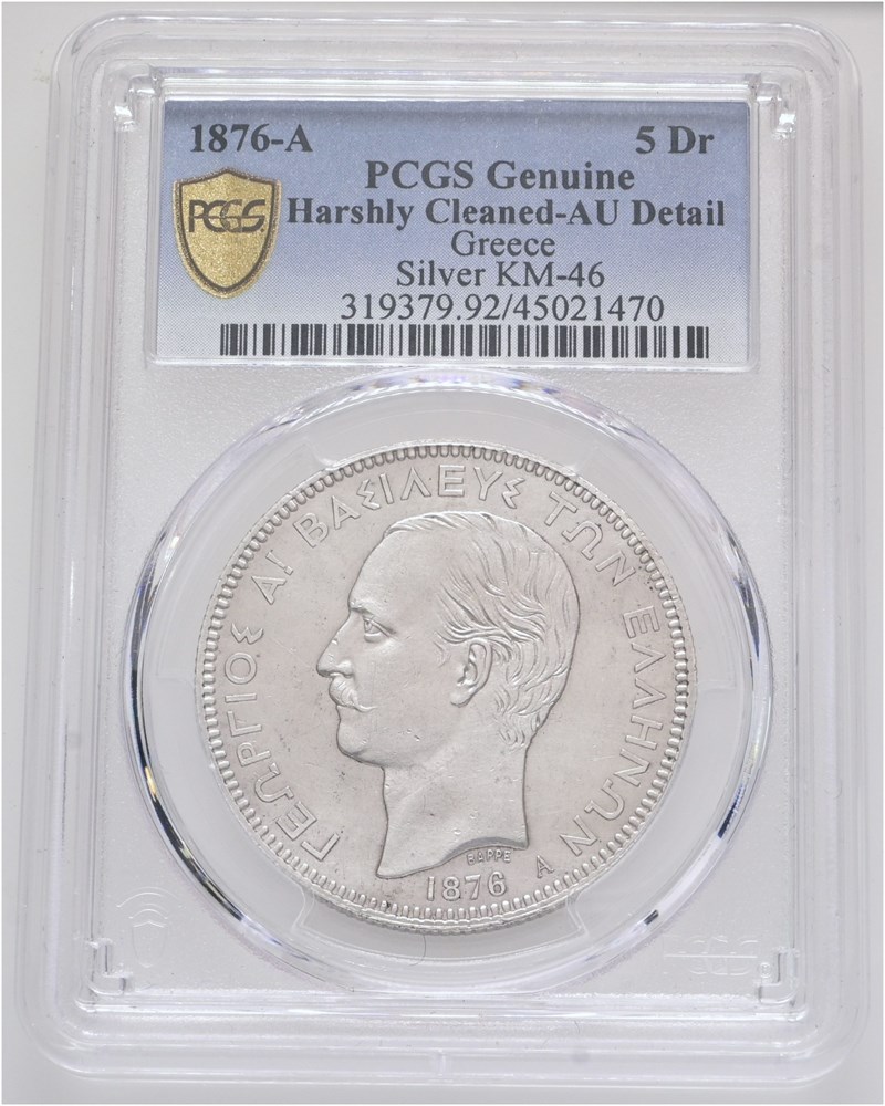 5 Drachmai 1876 A - graded genuine, AU details, harshly cleaned by PCGS.