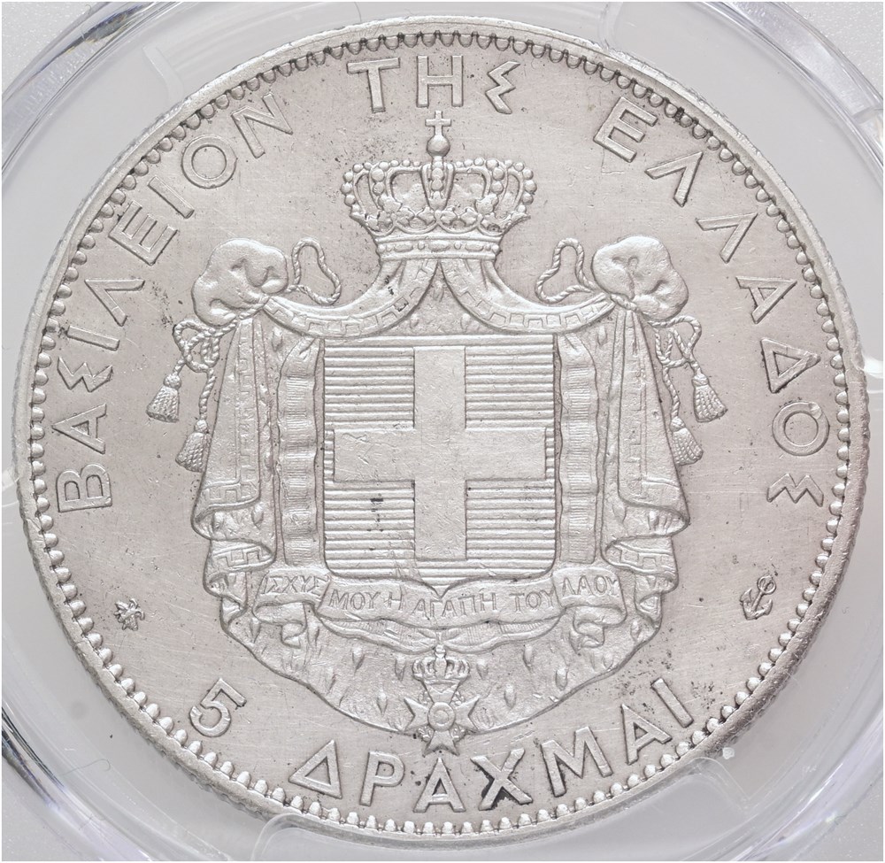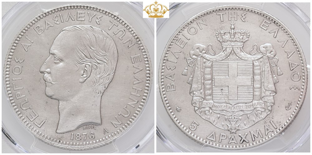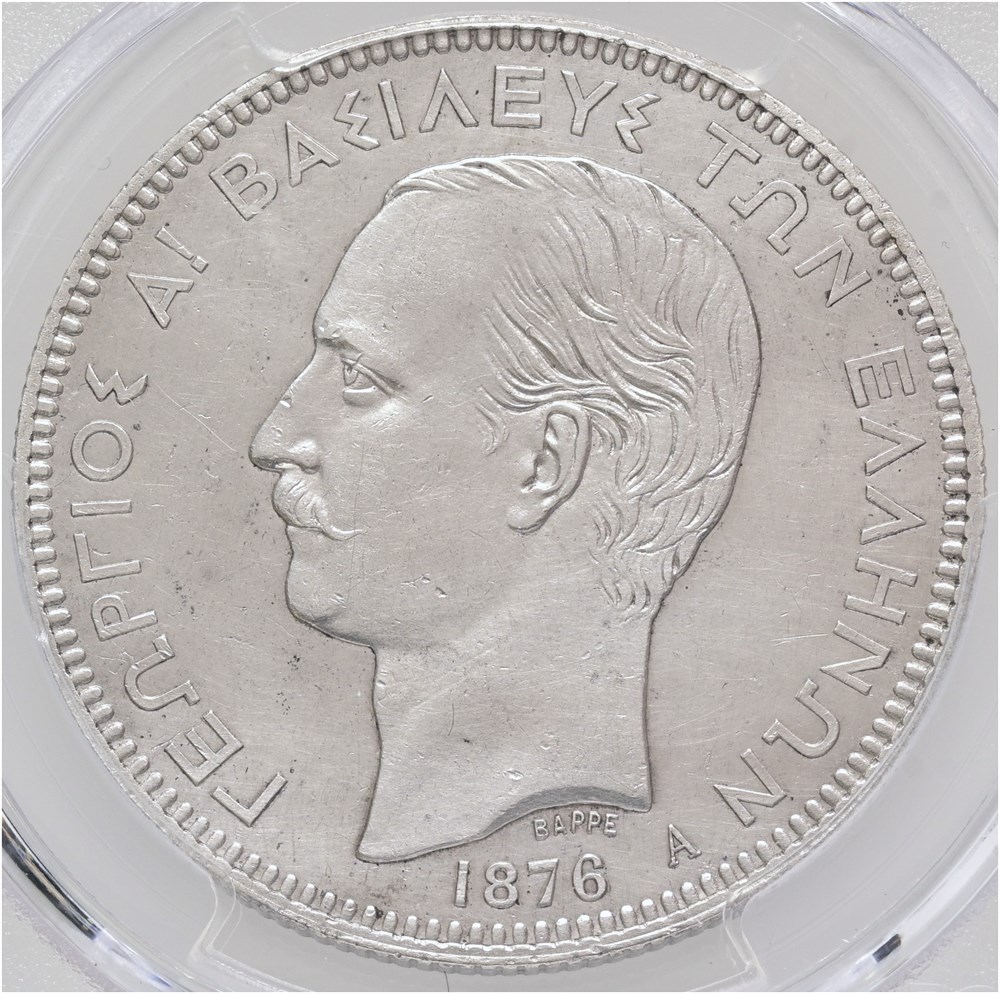 5 Drachmai 1876 A - graded AU details, harshly cleaned by PCGS.