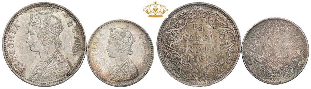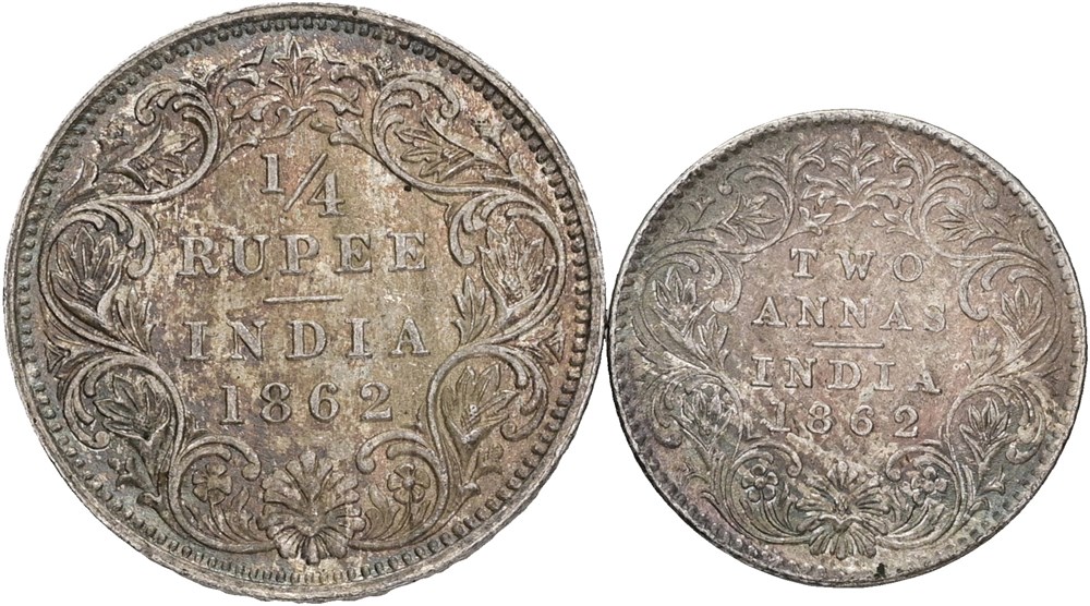 - 2 Annas 1862; 1/4 Rupee 1862. (2) (16190711)