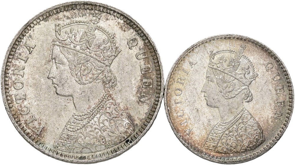 2 Annas 1862; 1/4 Rupee 1862. (2)