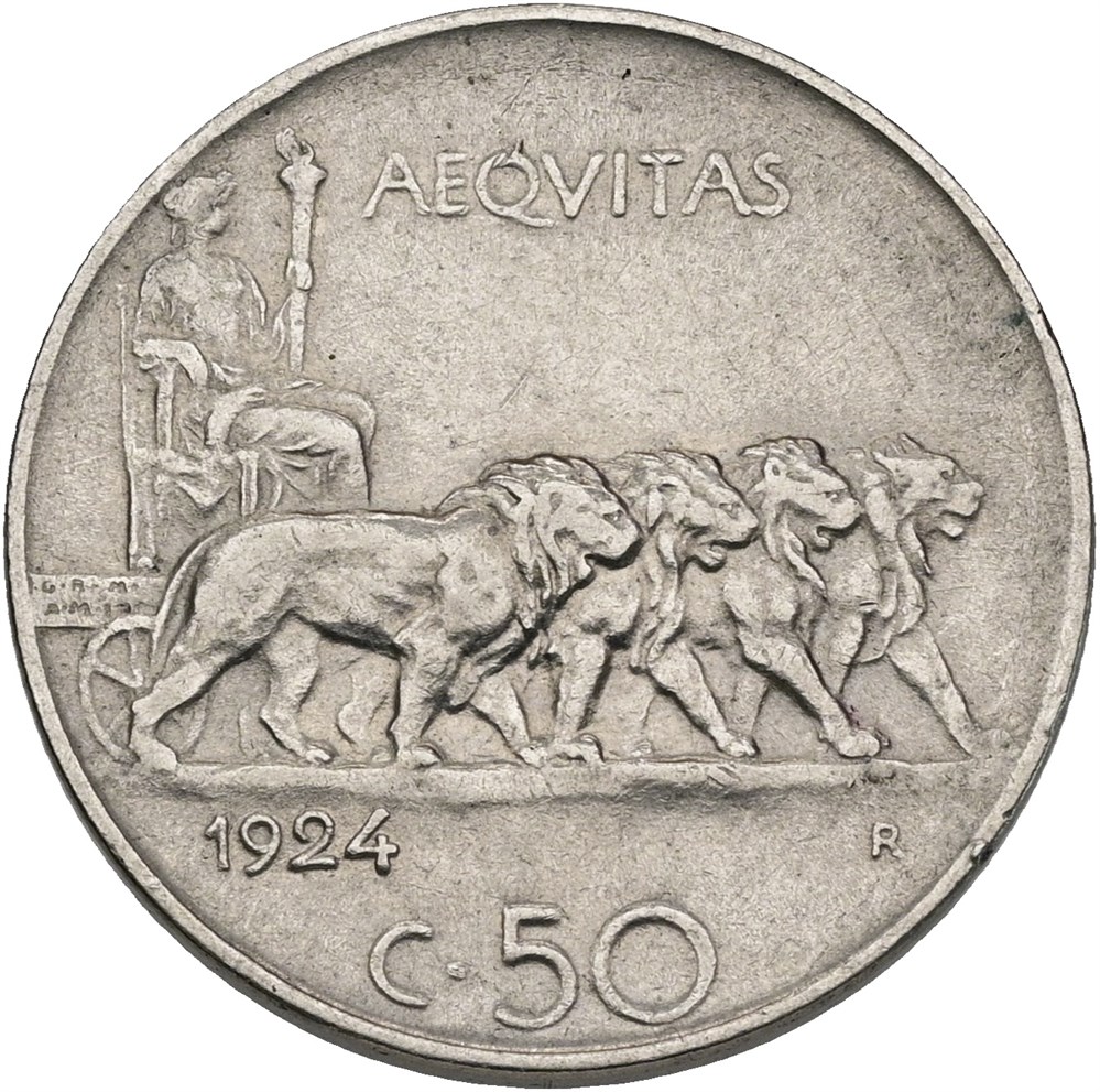 - 50 Centesimi 1924 R, plain edge (16193623)