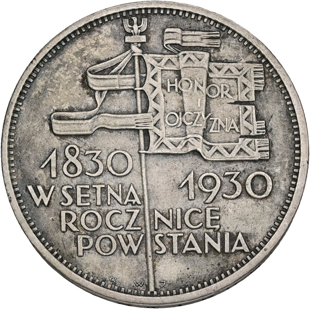 5 Zlotych 1930, centennial of 1830 revolution, cleaned, scratches.